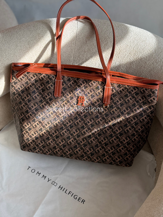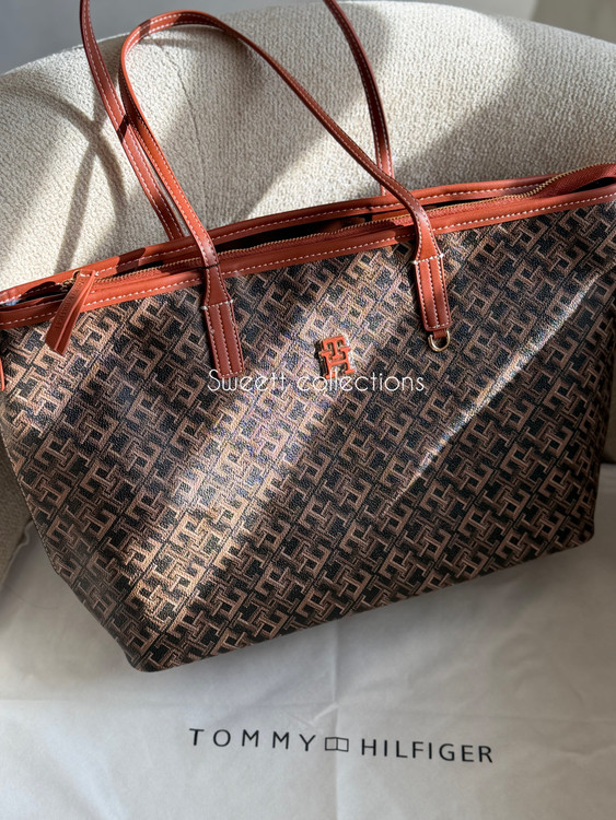 سر زیپ کیف برند تامی حک شده.