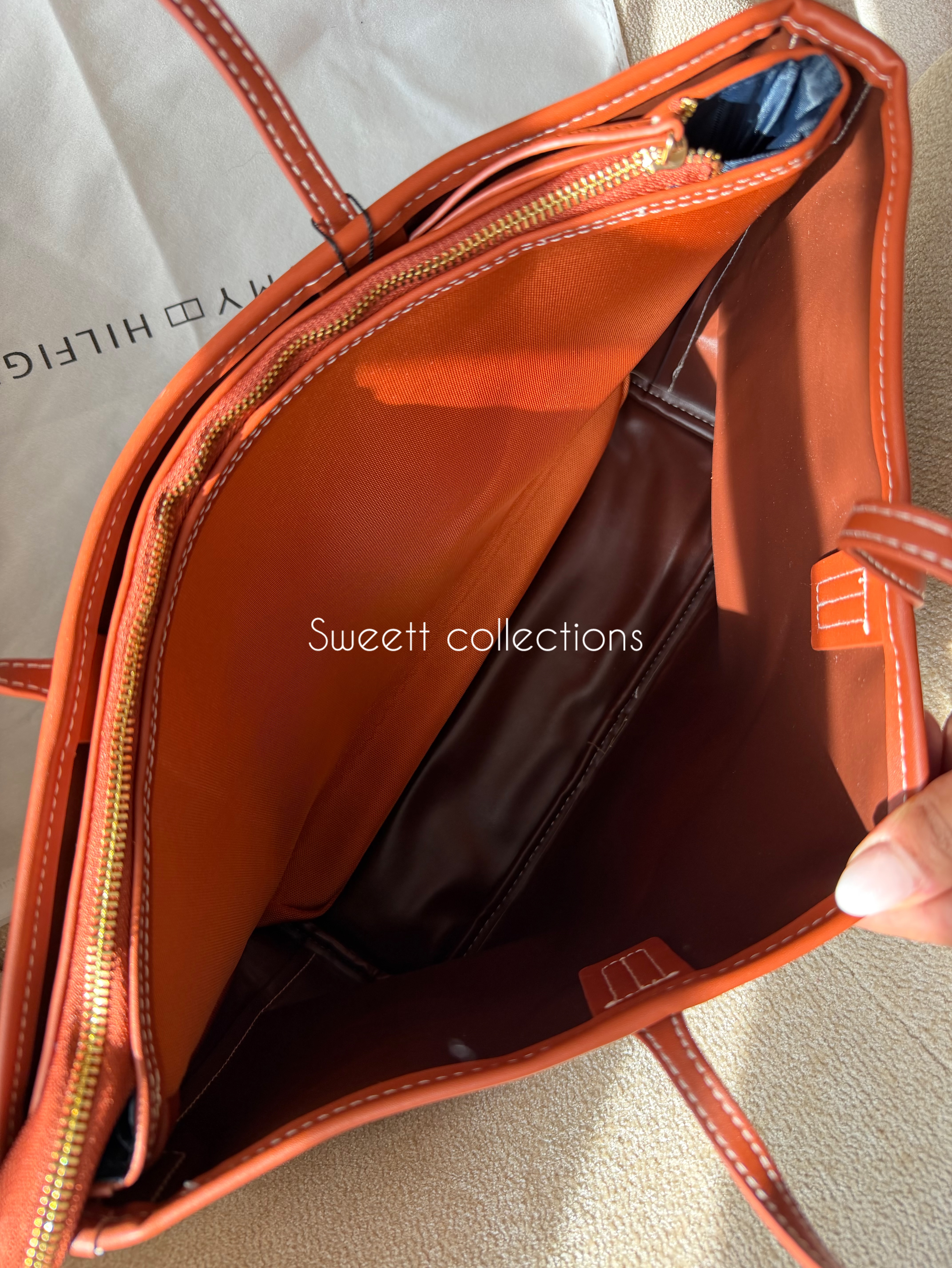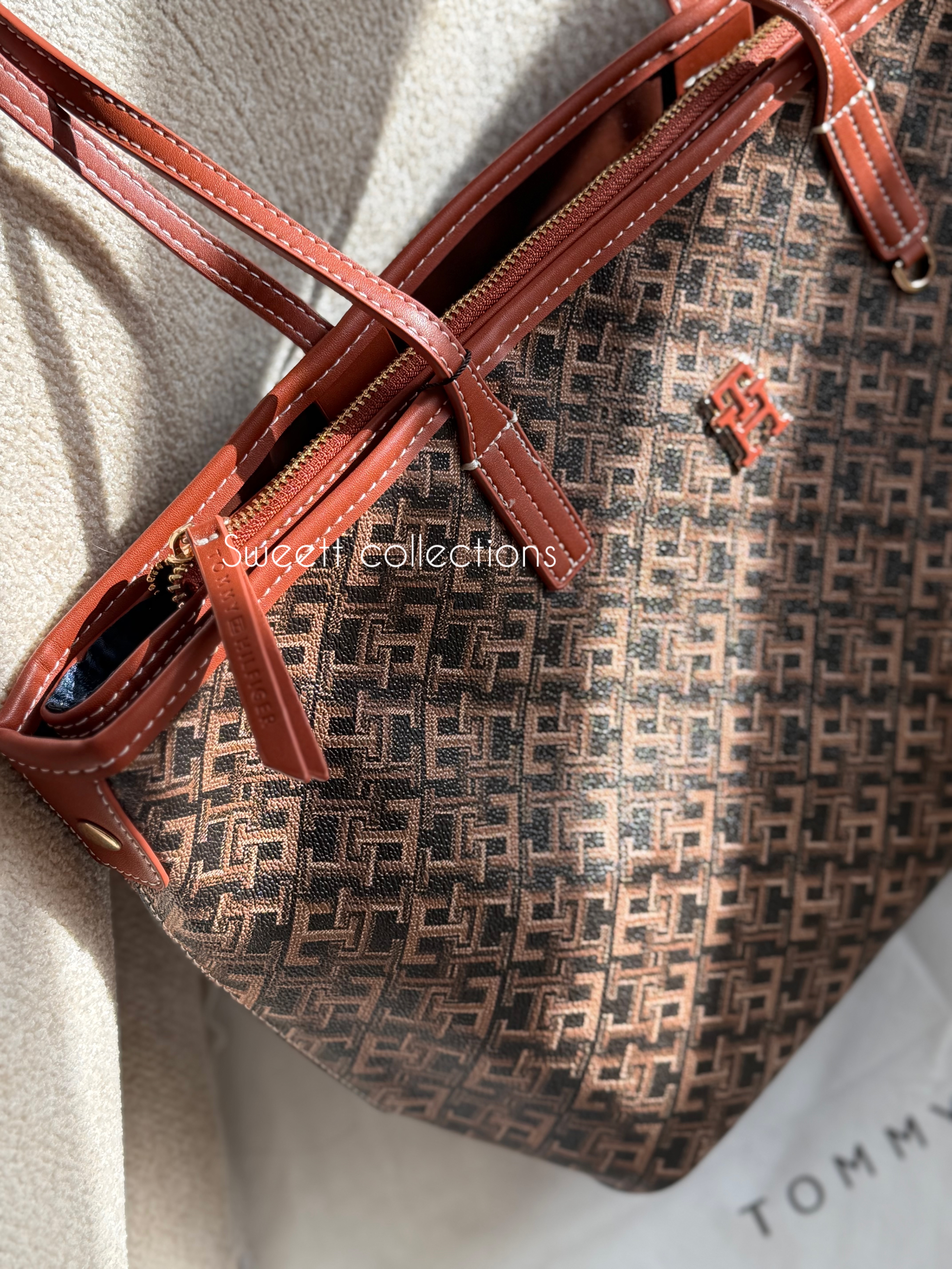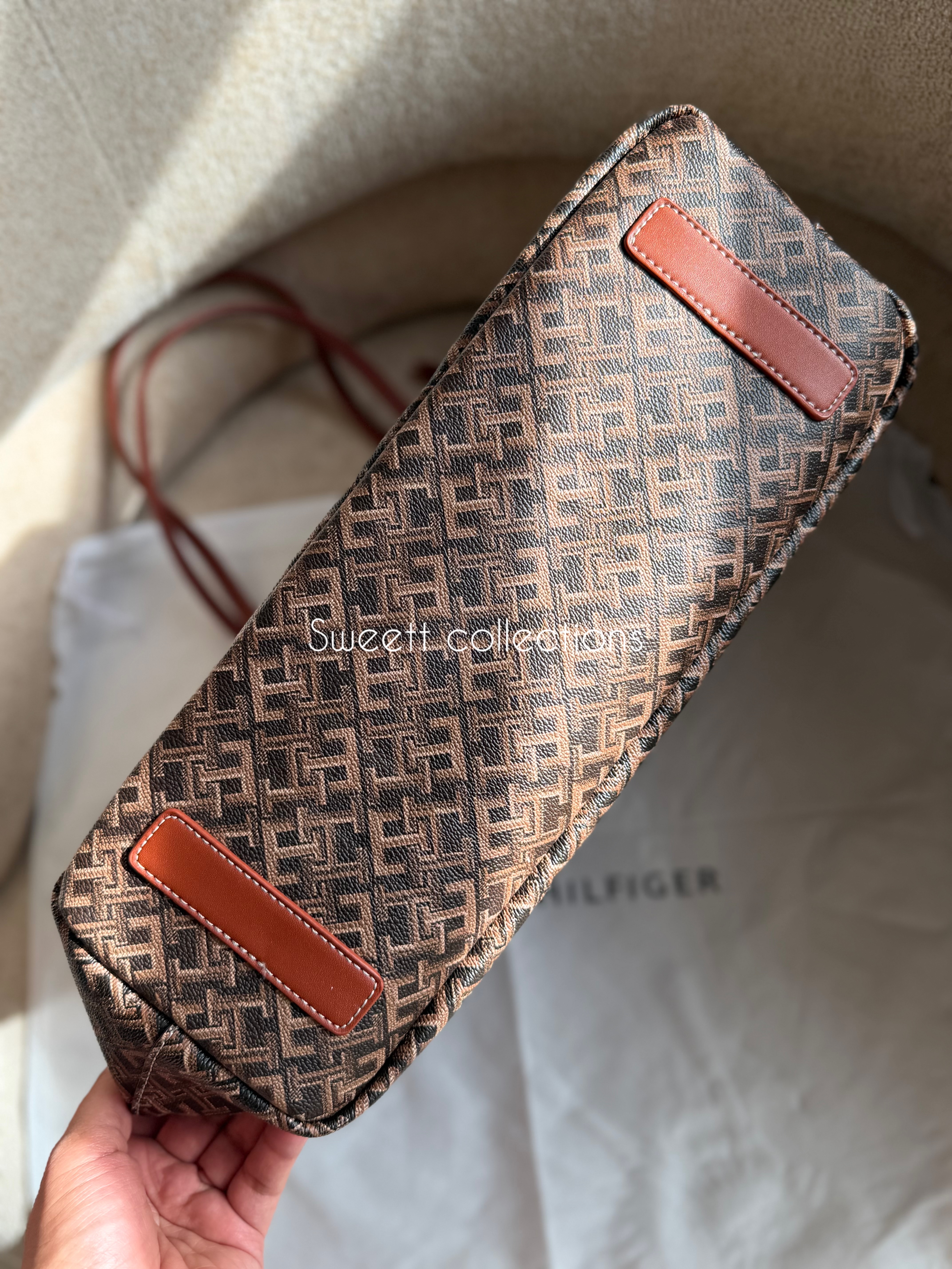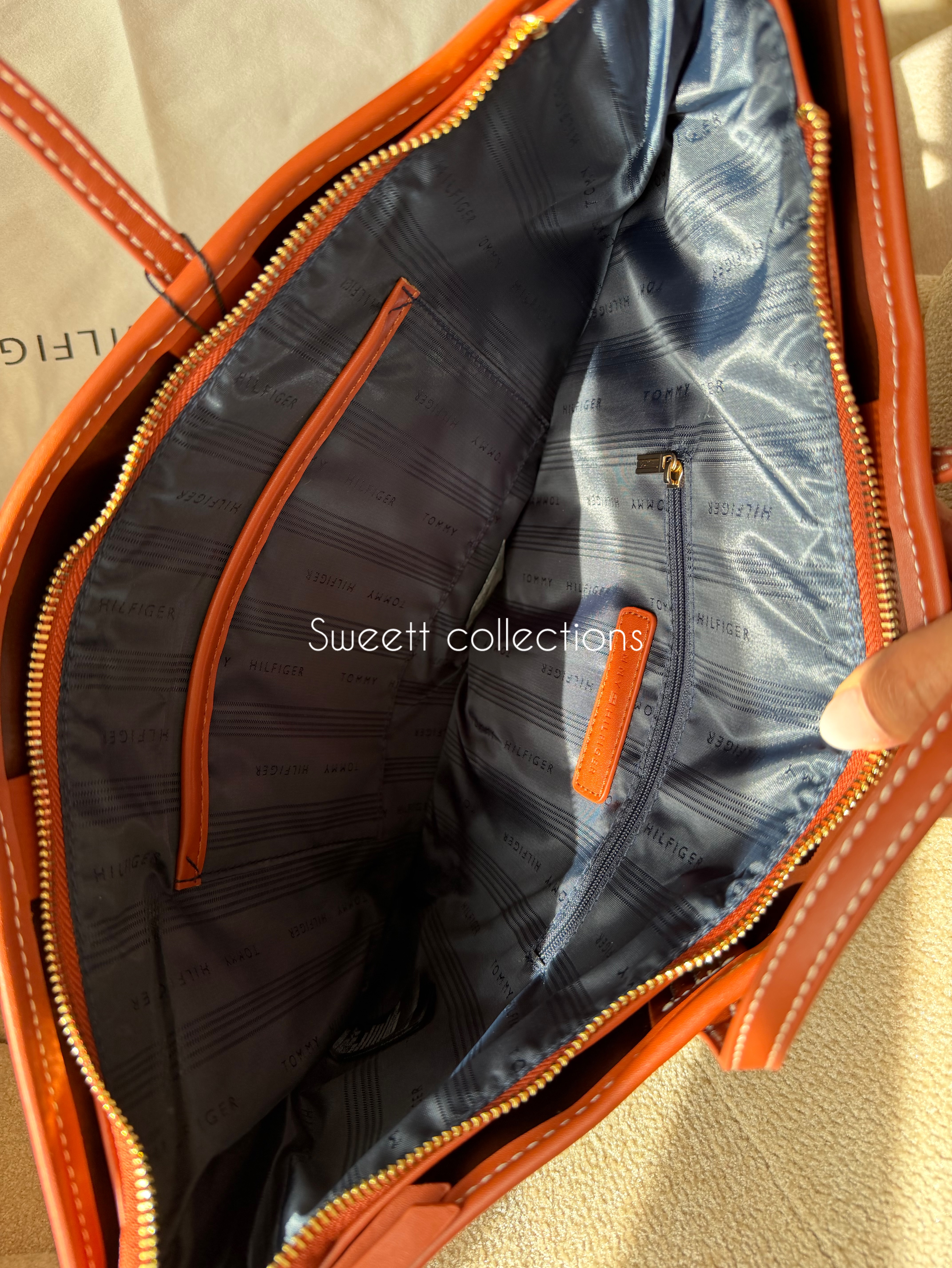 سر زیپ کیف برند تامی حک شده.