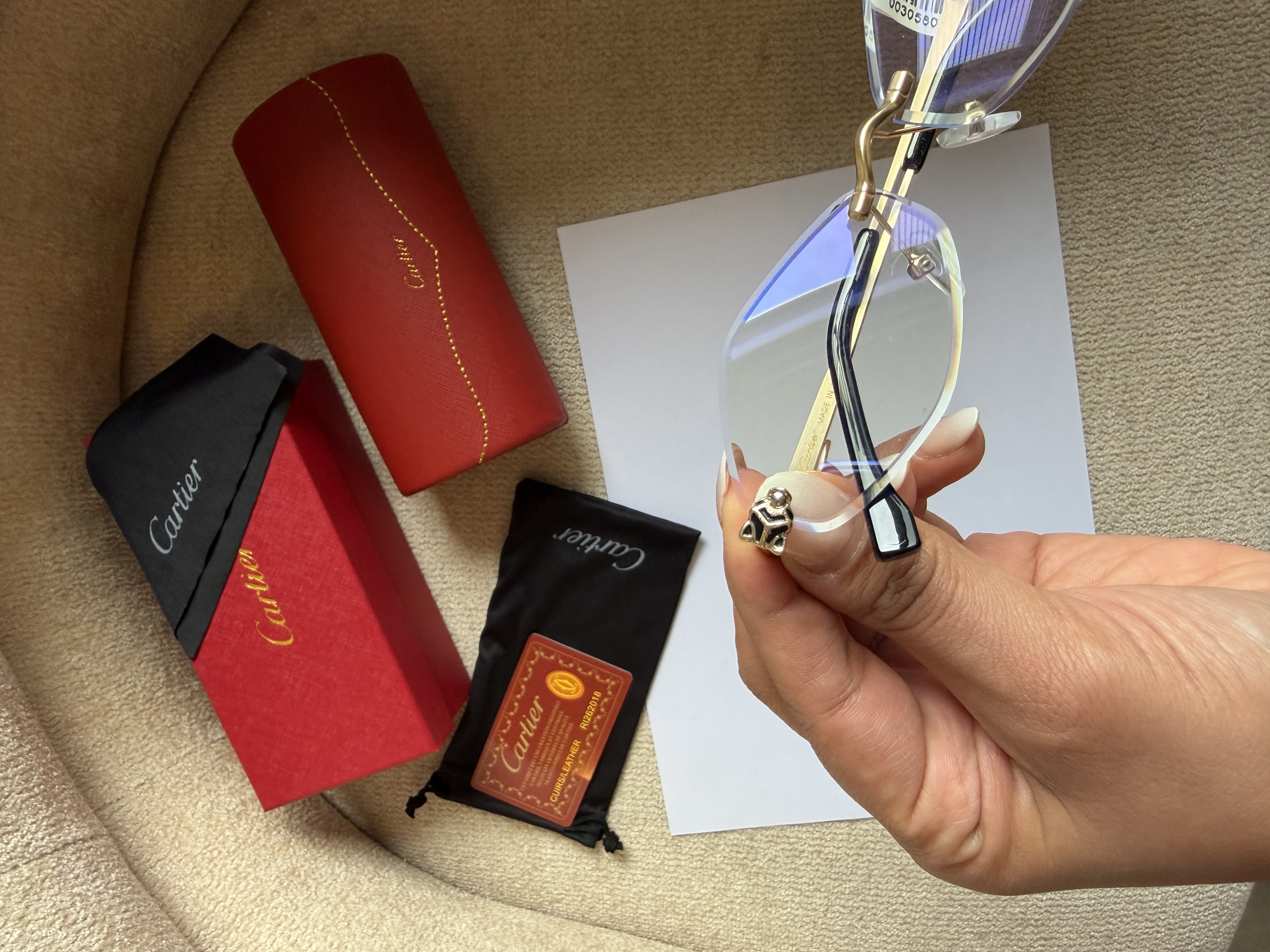 عینک بلوکات کارتیر کیفیت مستر کوالیتی بالاترین کیفیت موجود فول پک هست باکس / کاور /شناسنامه دار / دستمال عینک بهترین کیفیت شیشه روی دسته عینک برند حک شده.طراحی که روی دسته عینک هست فوق العاده خاص هست اگر دنبال عینک خاص هستین گزینه خیلی خوبی هست.