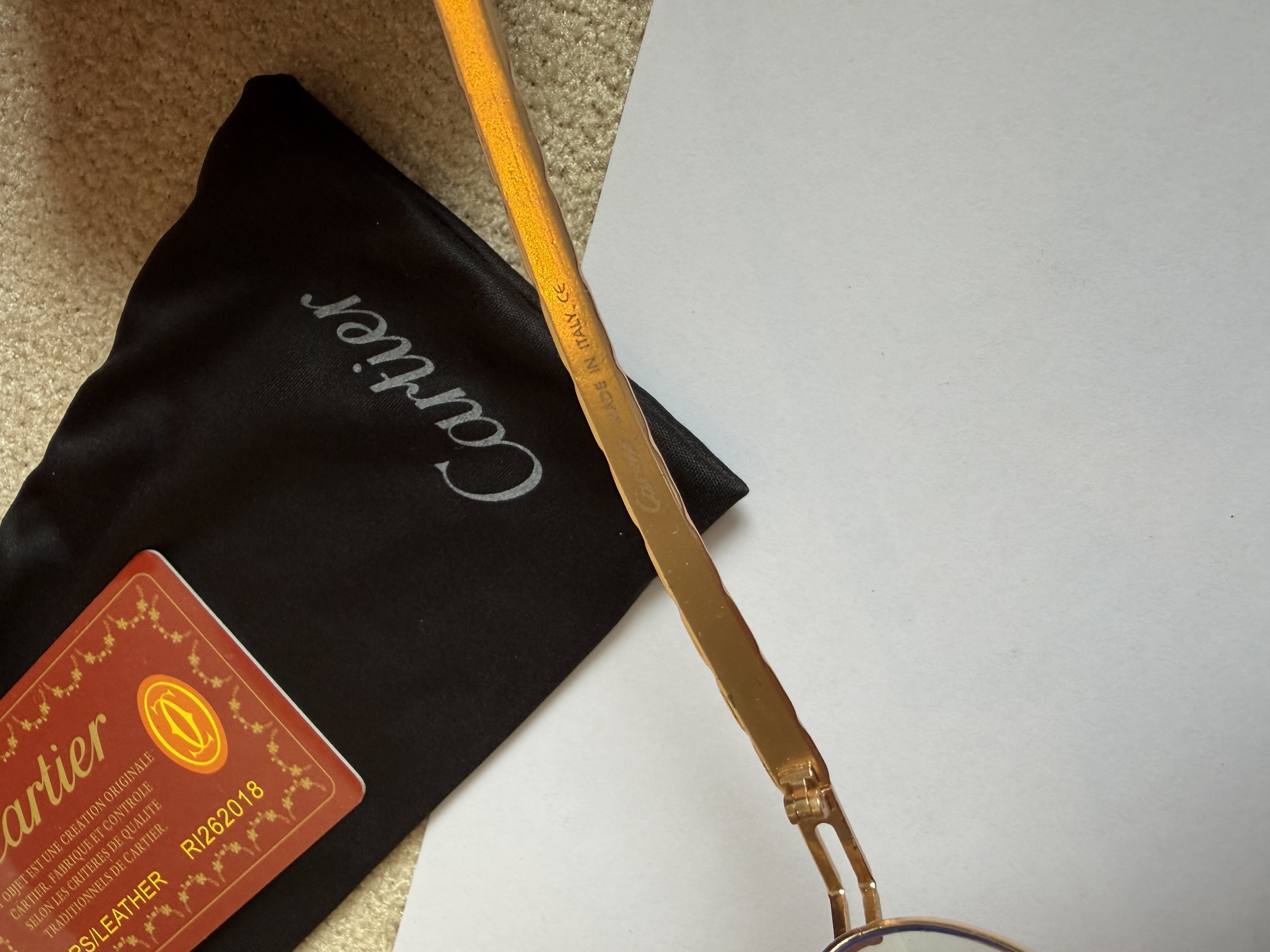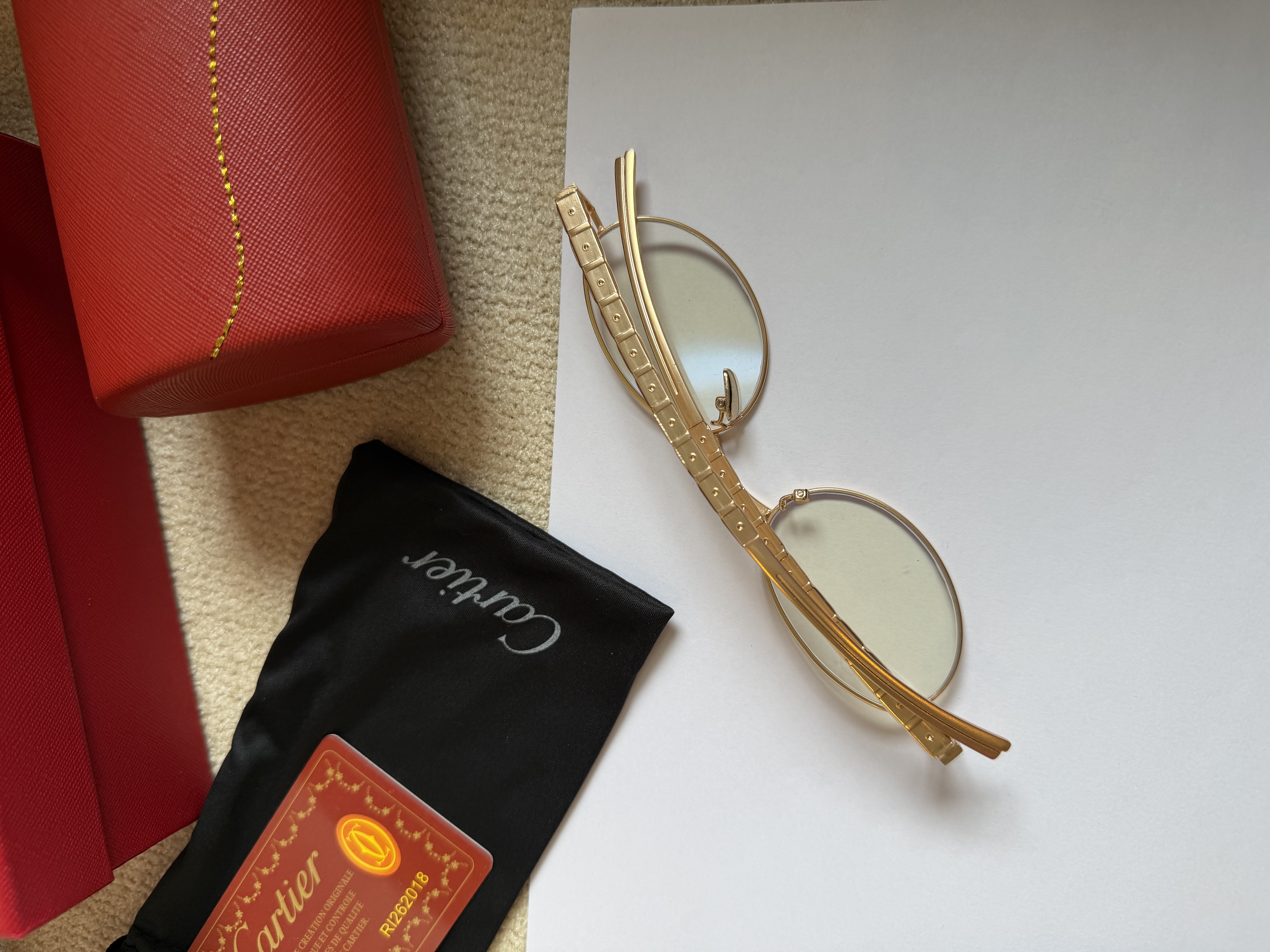 عینک بلوکات کارتیر کیفیت مستر کوالیتی بالاترین کیفیت موجود فول پک هست باکس / کاور /شناسنامه دار / دستمال عینک بهترین کیفیت شیشه روی دسته عینک برند حک شده.