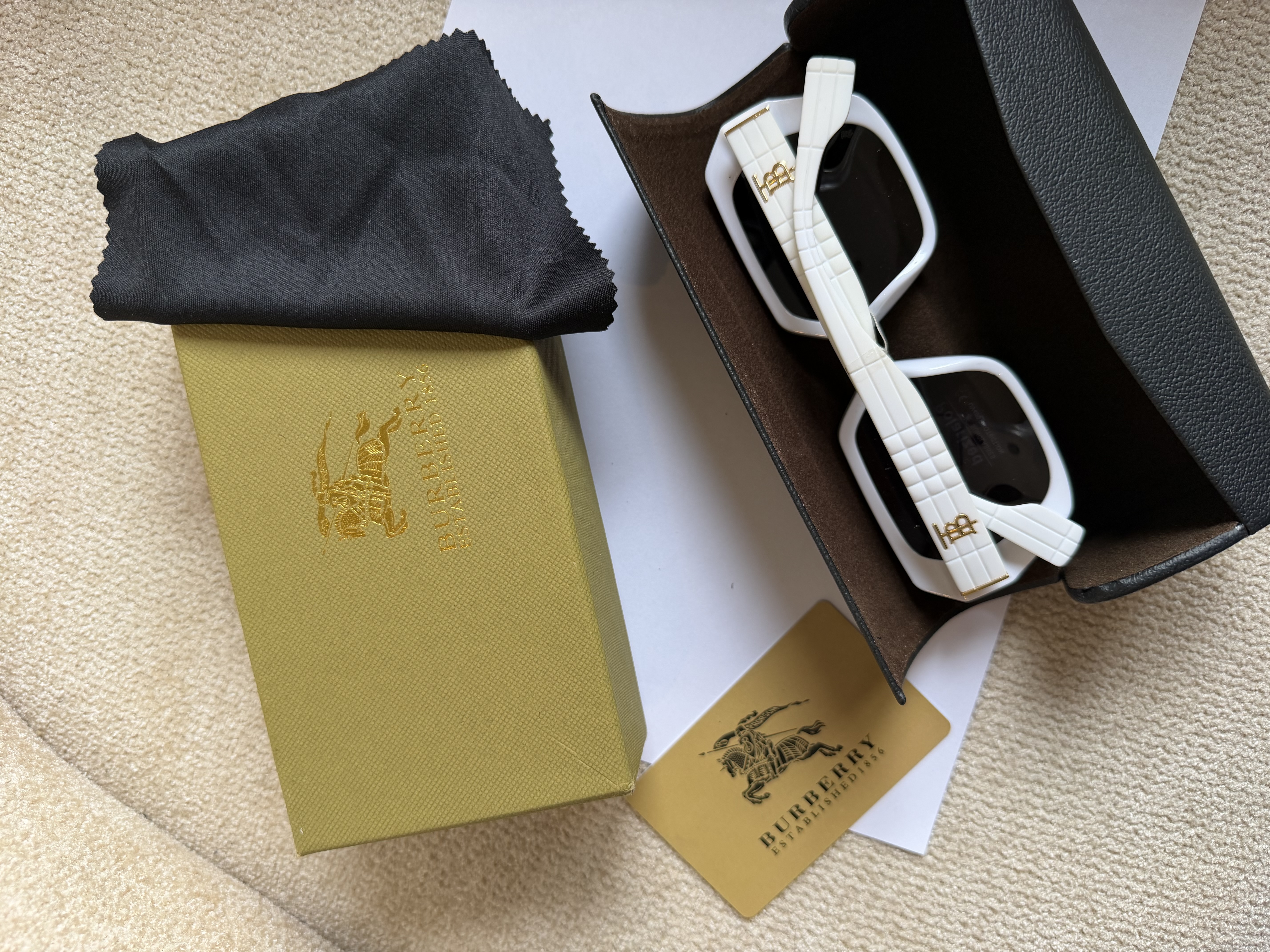 عینک بربری کیفیت مستر کوالیتی بالاترین کیفیت موجود فول پک هست باکس / کاور /شناسنامه دار / دستمال عینک بهترین کیفیت شیشه روی دسته عینک برند حک شده.