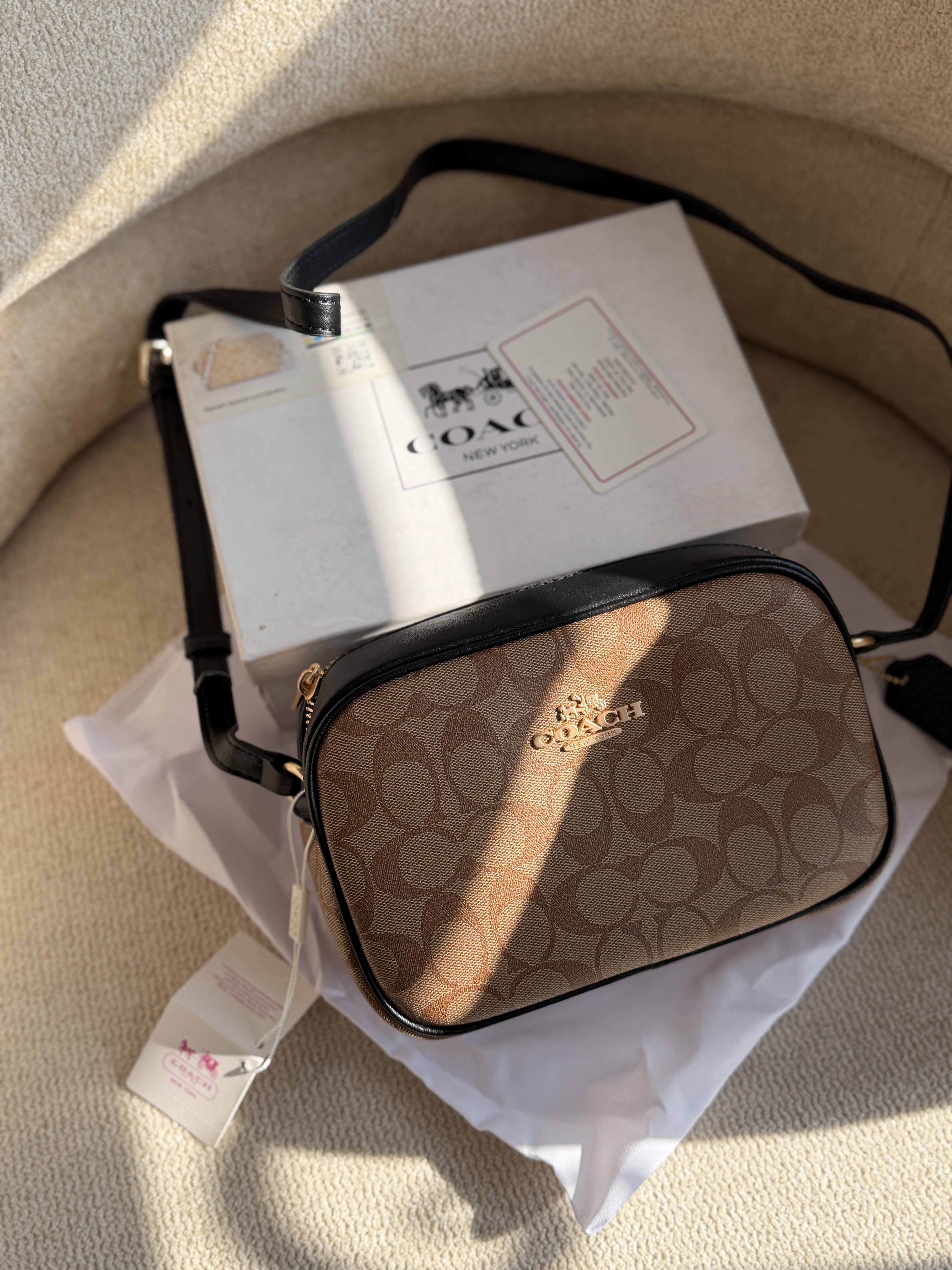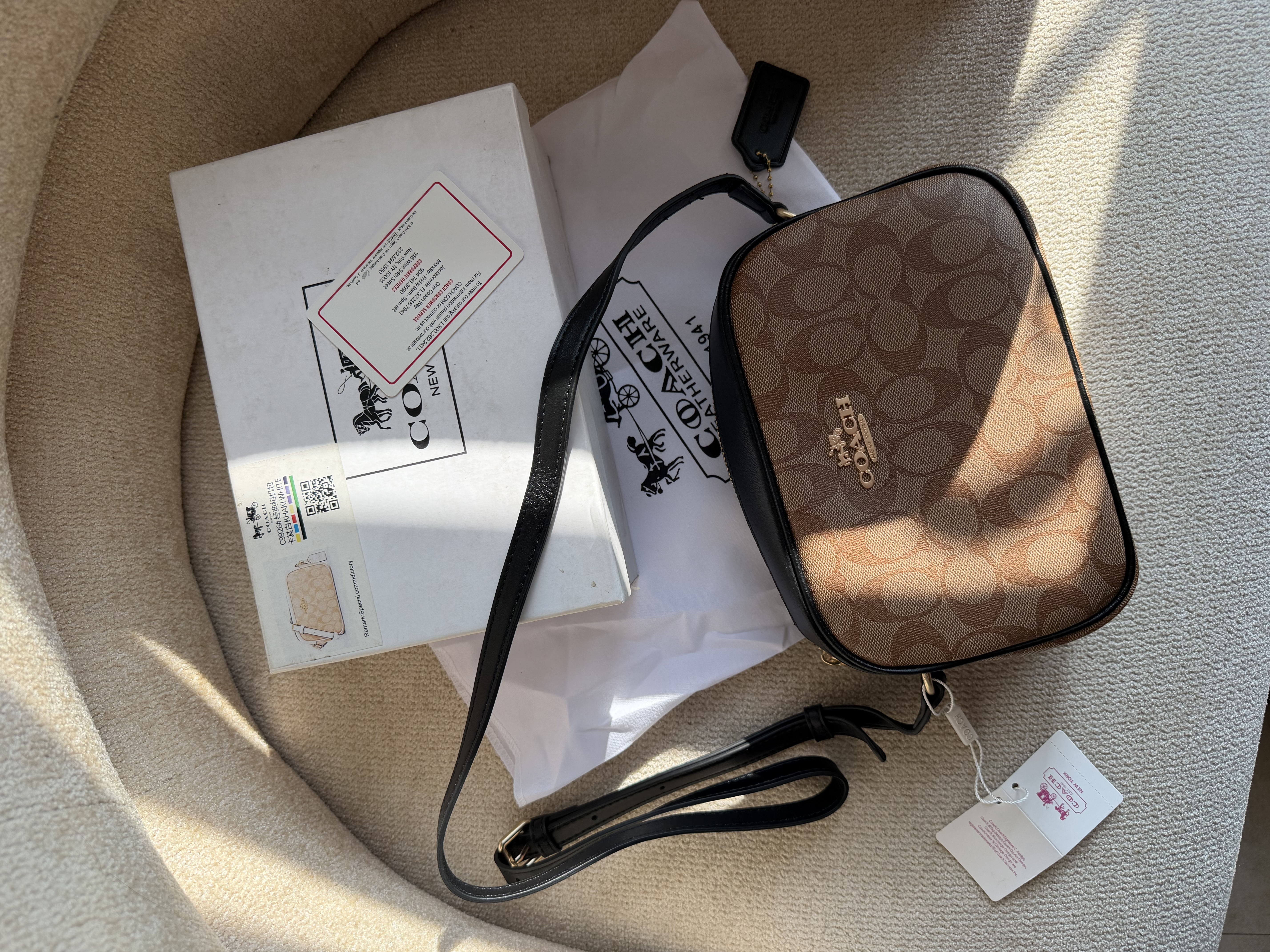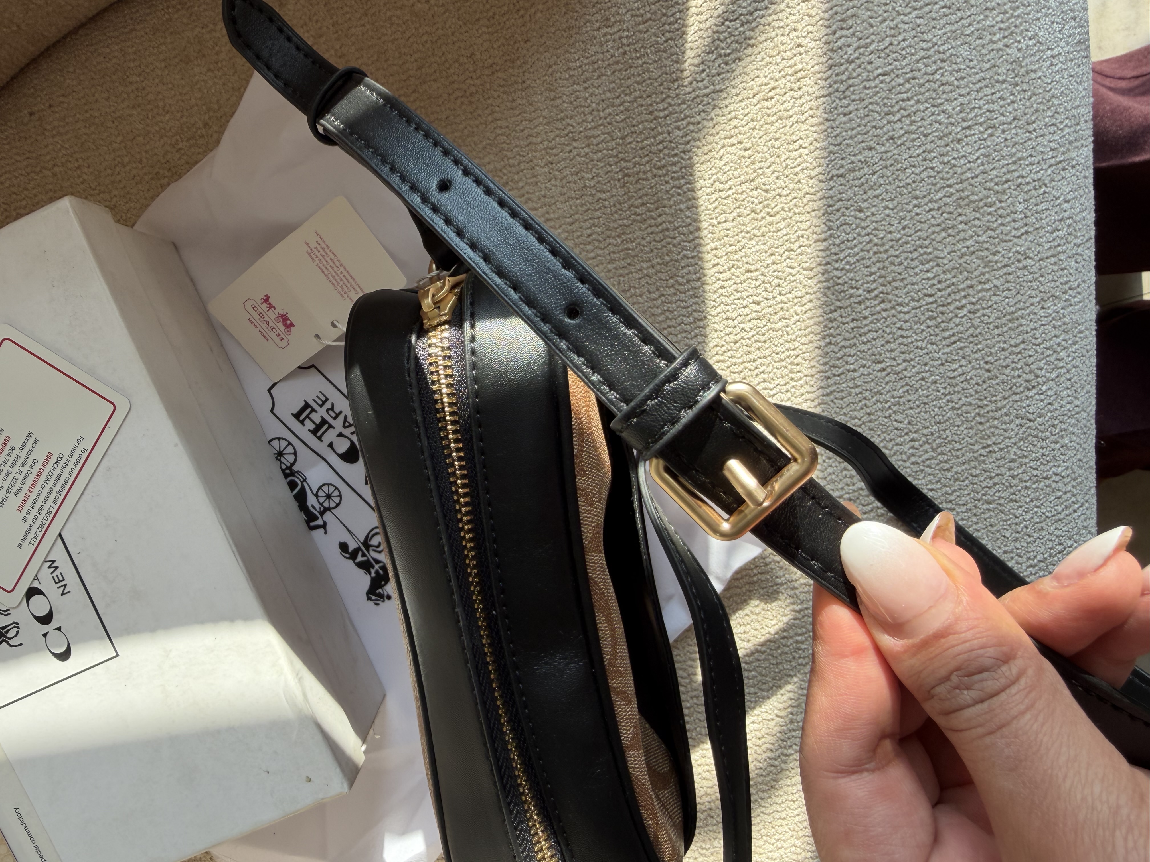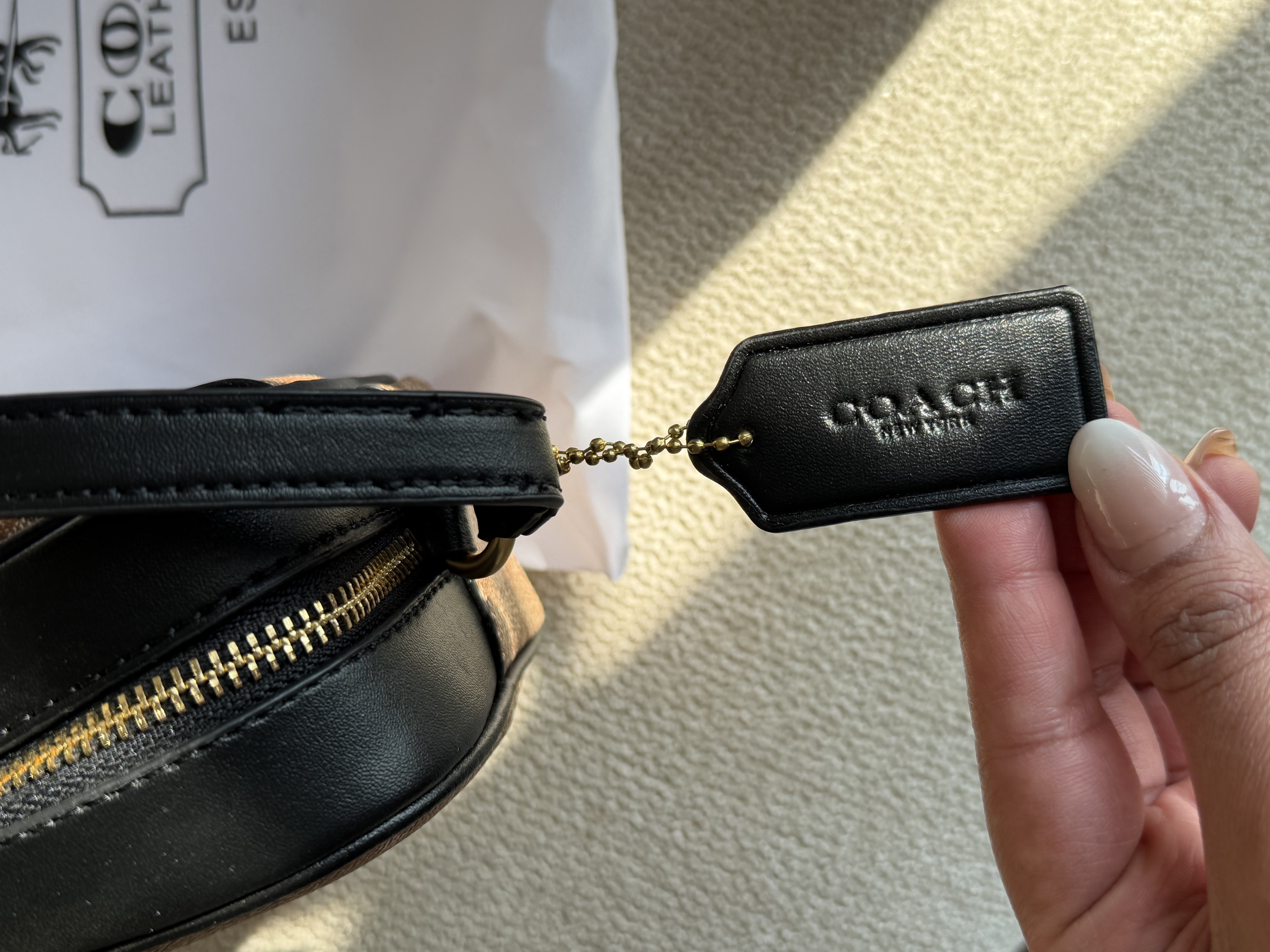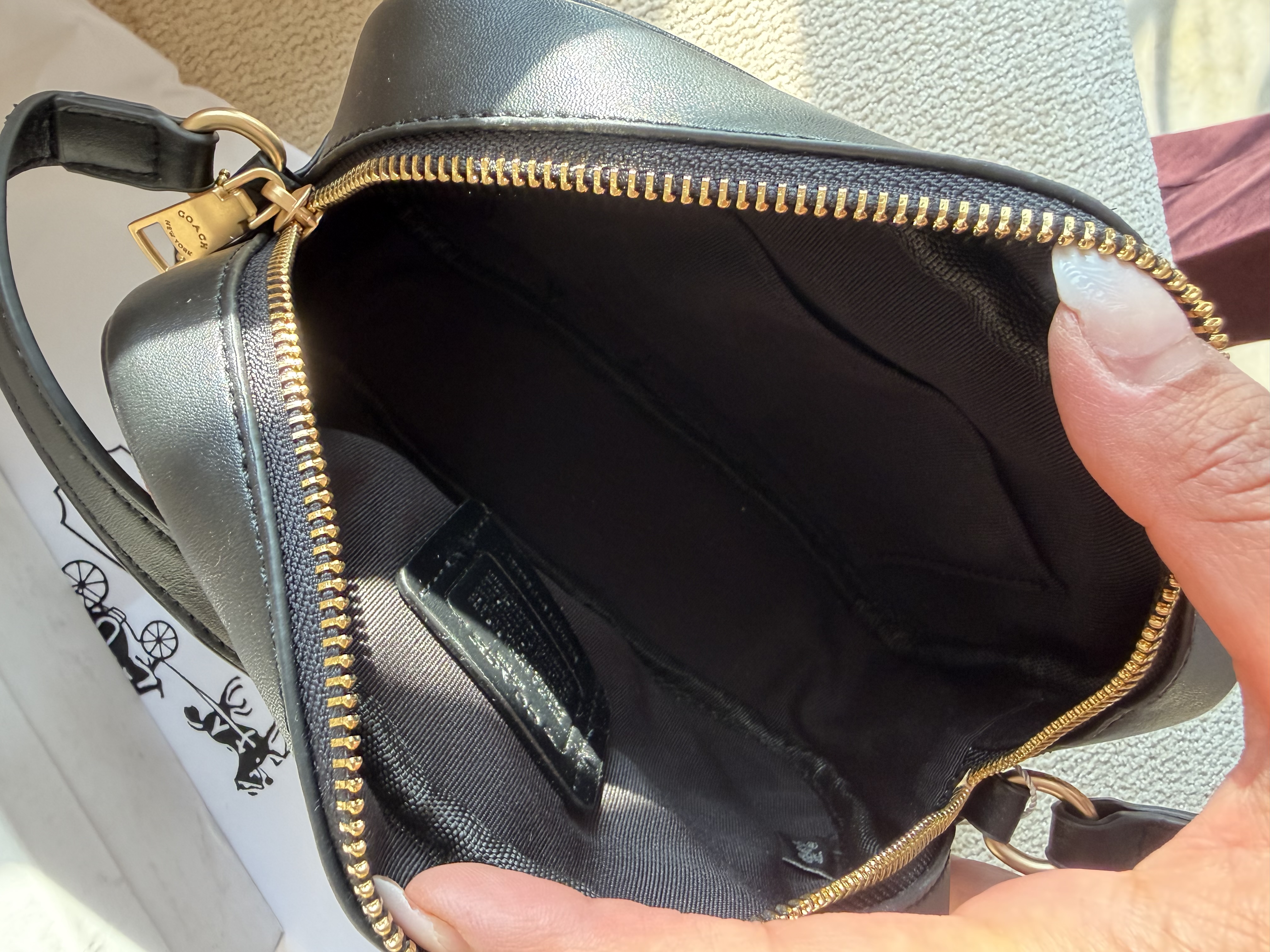 روی یراق ها و سر زیپ ها و داخل آستر کیف برند کوچ حک شده