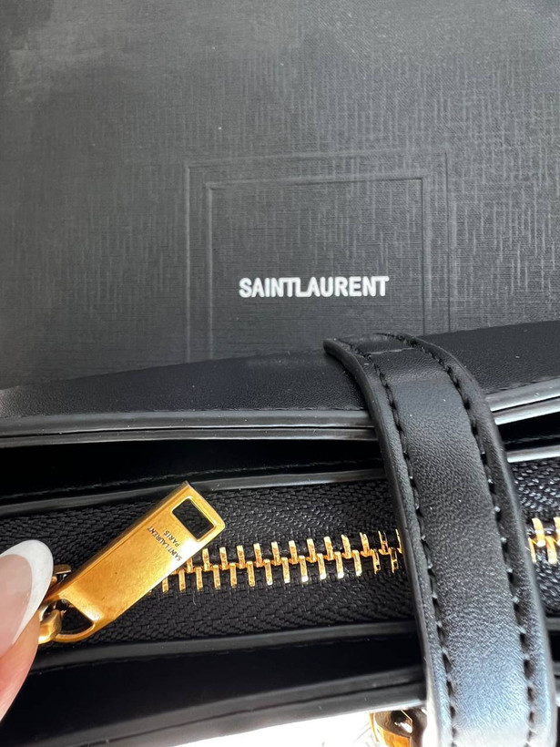 برند YSL روی یراق کیف بهصورت حک شده و همچنین استر داخلی کیف نیز با برند مشخص شده است که اصالت و ظرافت آن را دوچندان میکند. بند کوتاه کیف قابلیت تنظیم داشته و بهراحتی روی شانه قرار میگیرد.
