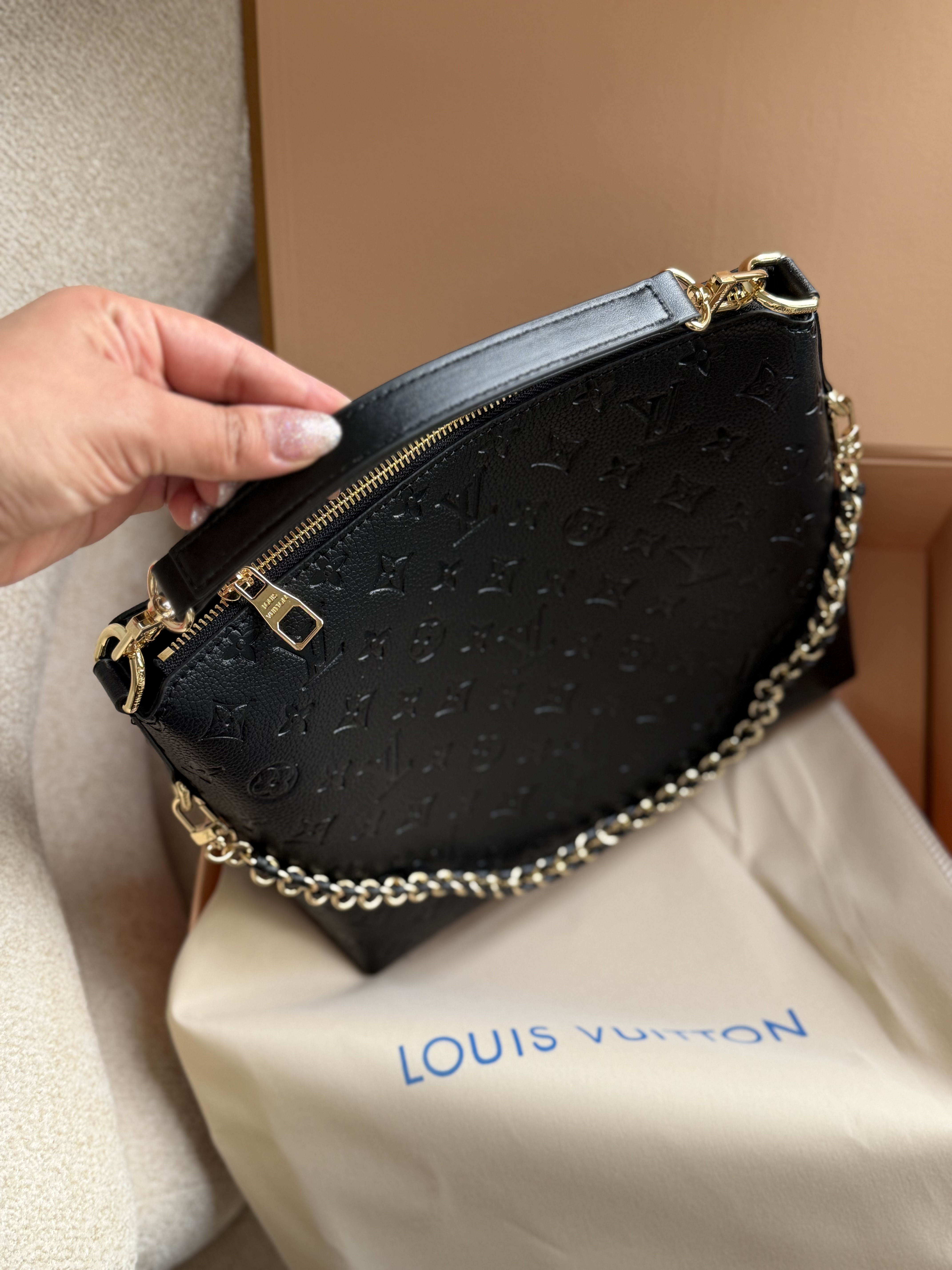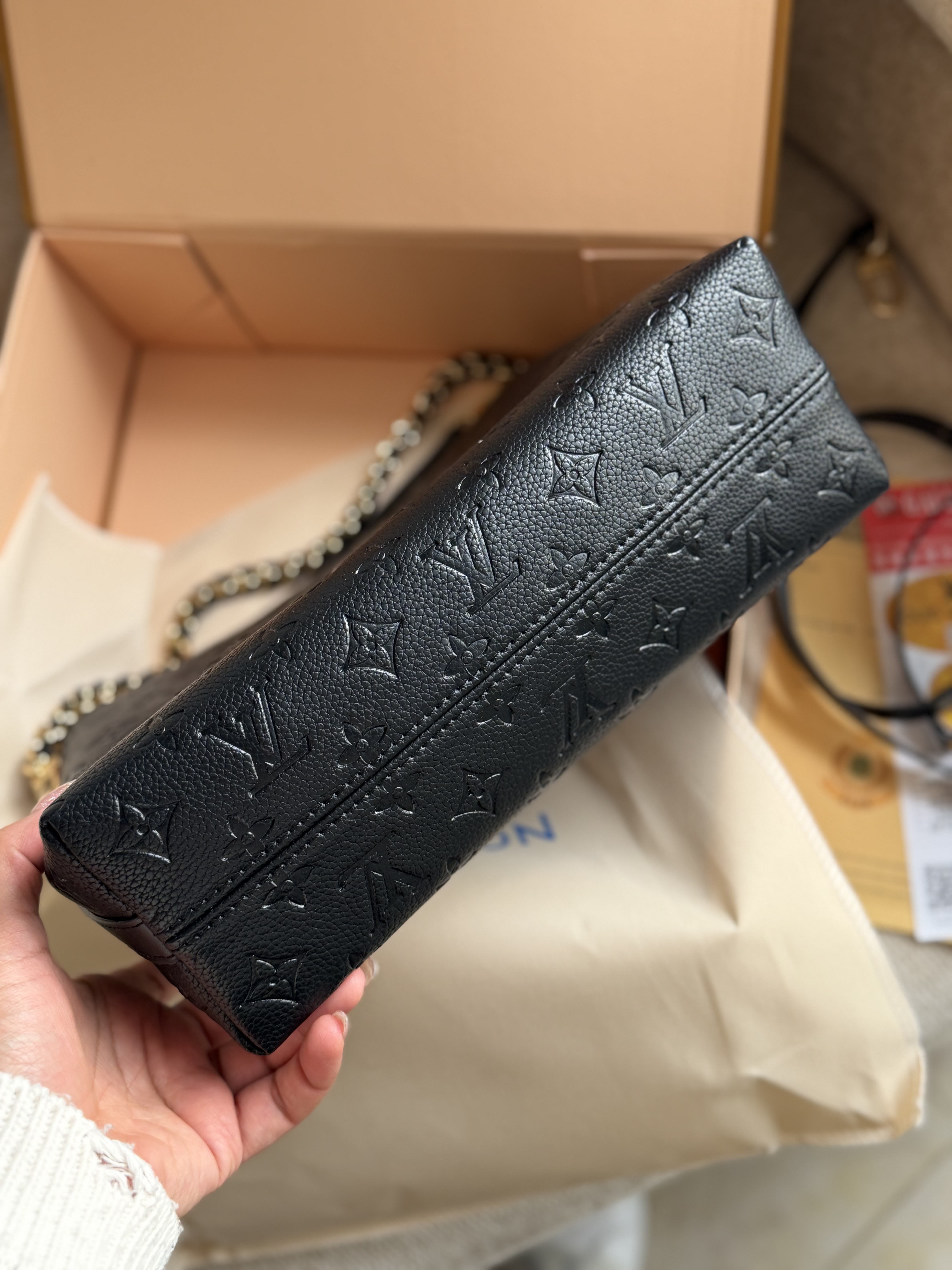 طرح لوییز ویتون روی کیف برجسته هستش