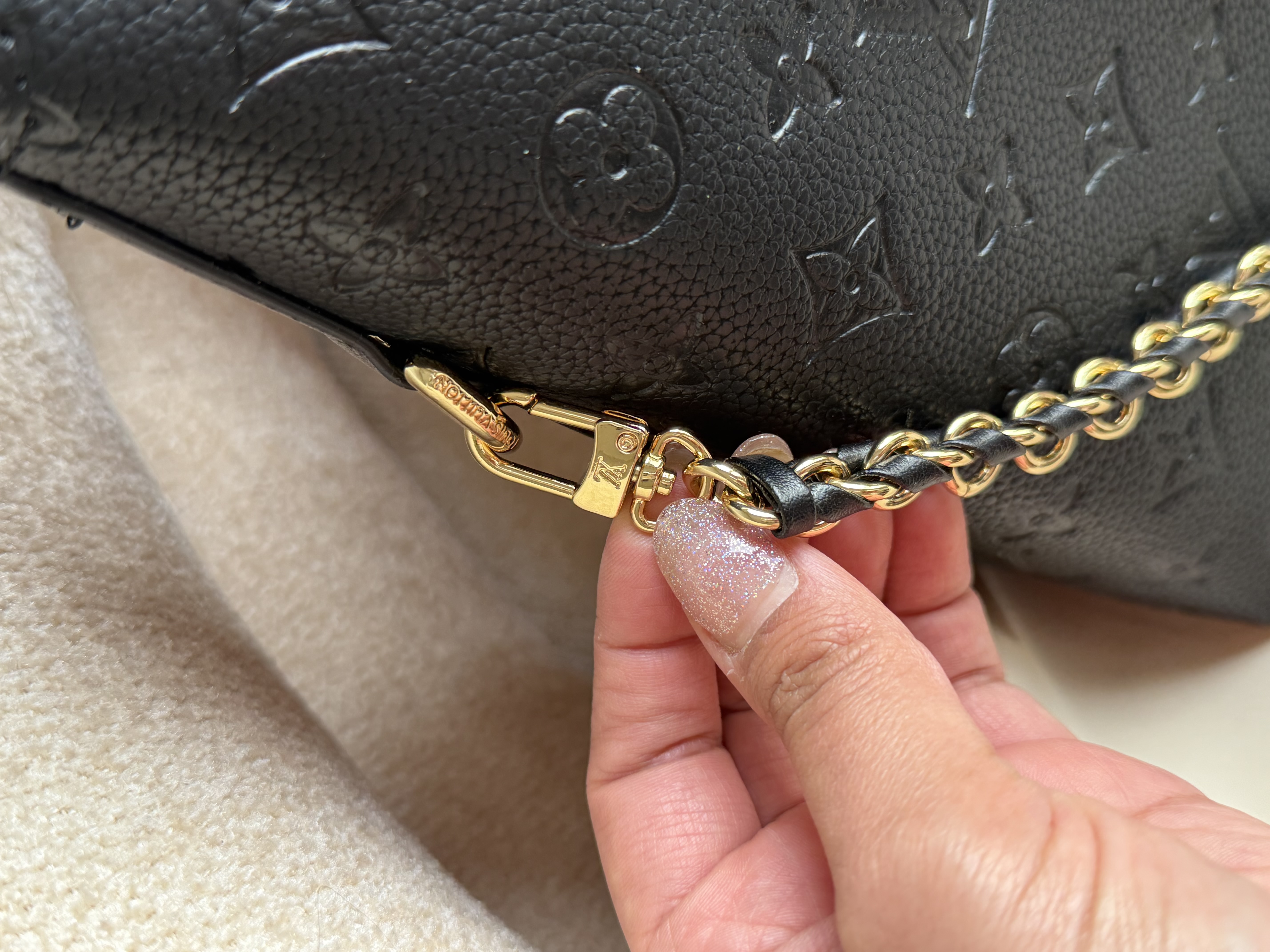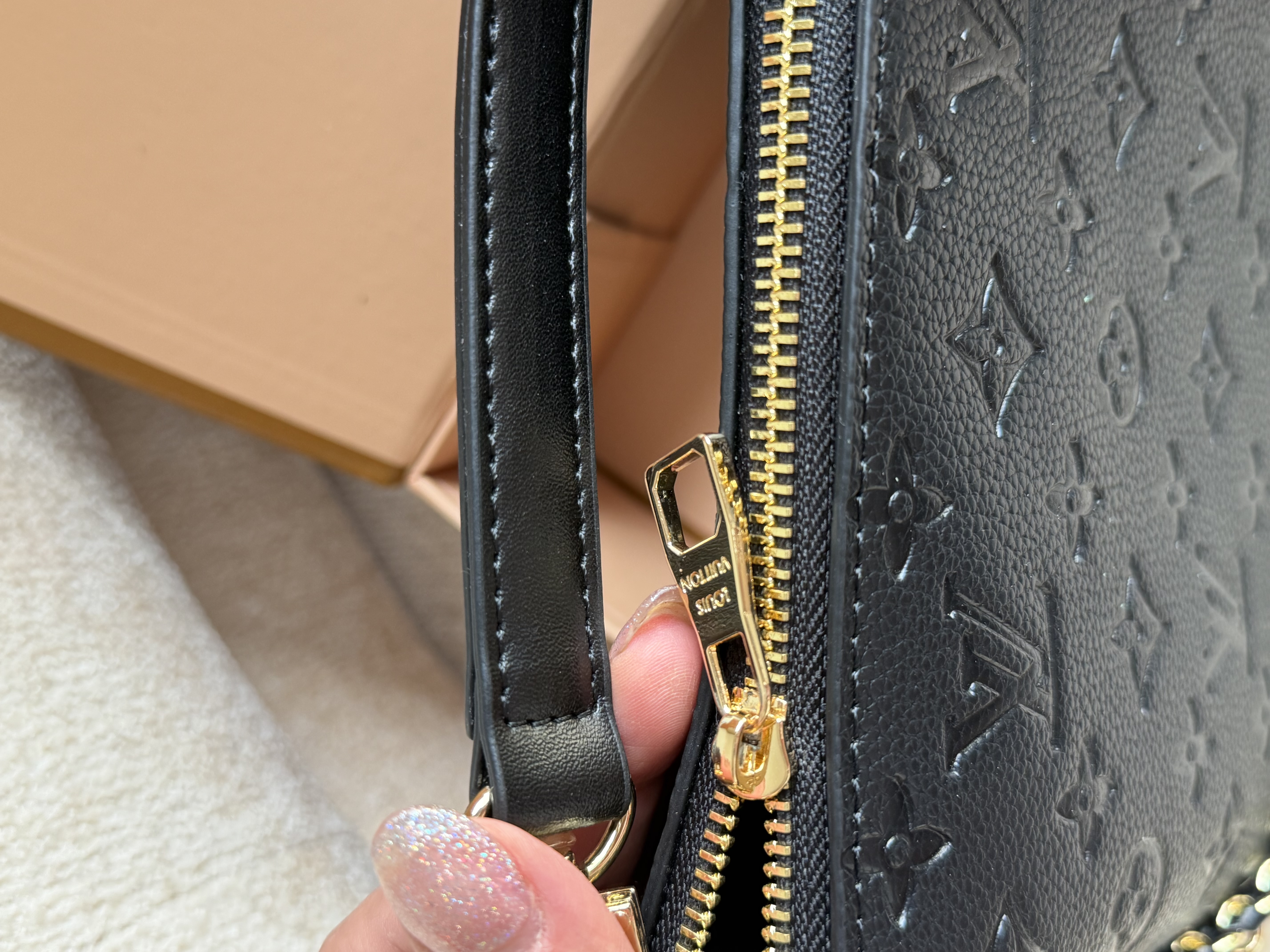 روی زیپ و یراق های کیف برند لوییز ویتون حک شده