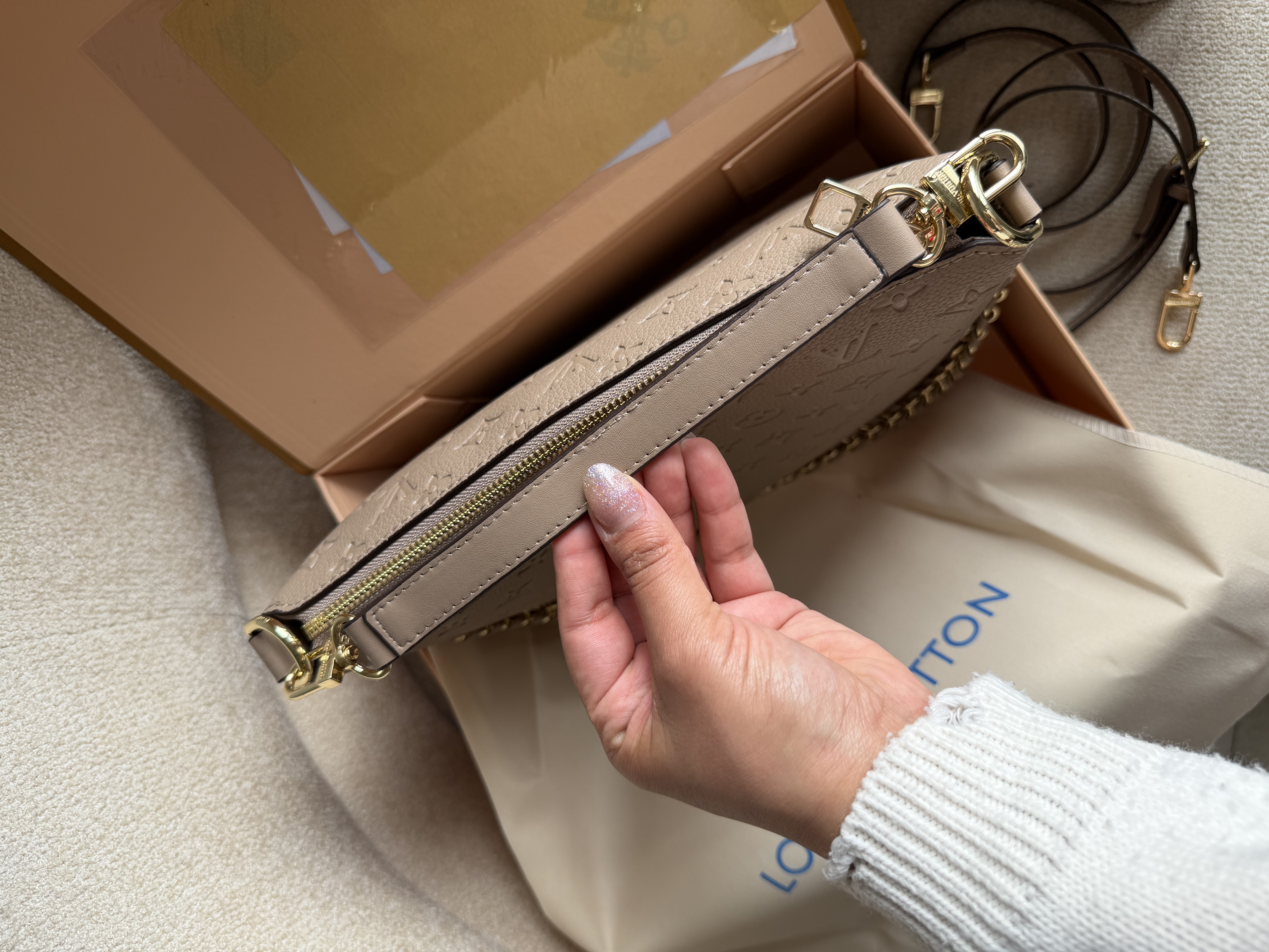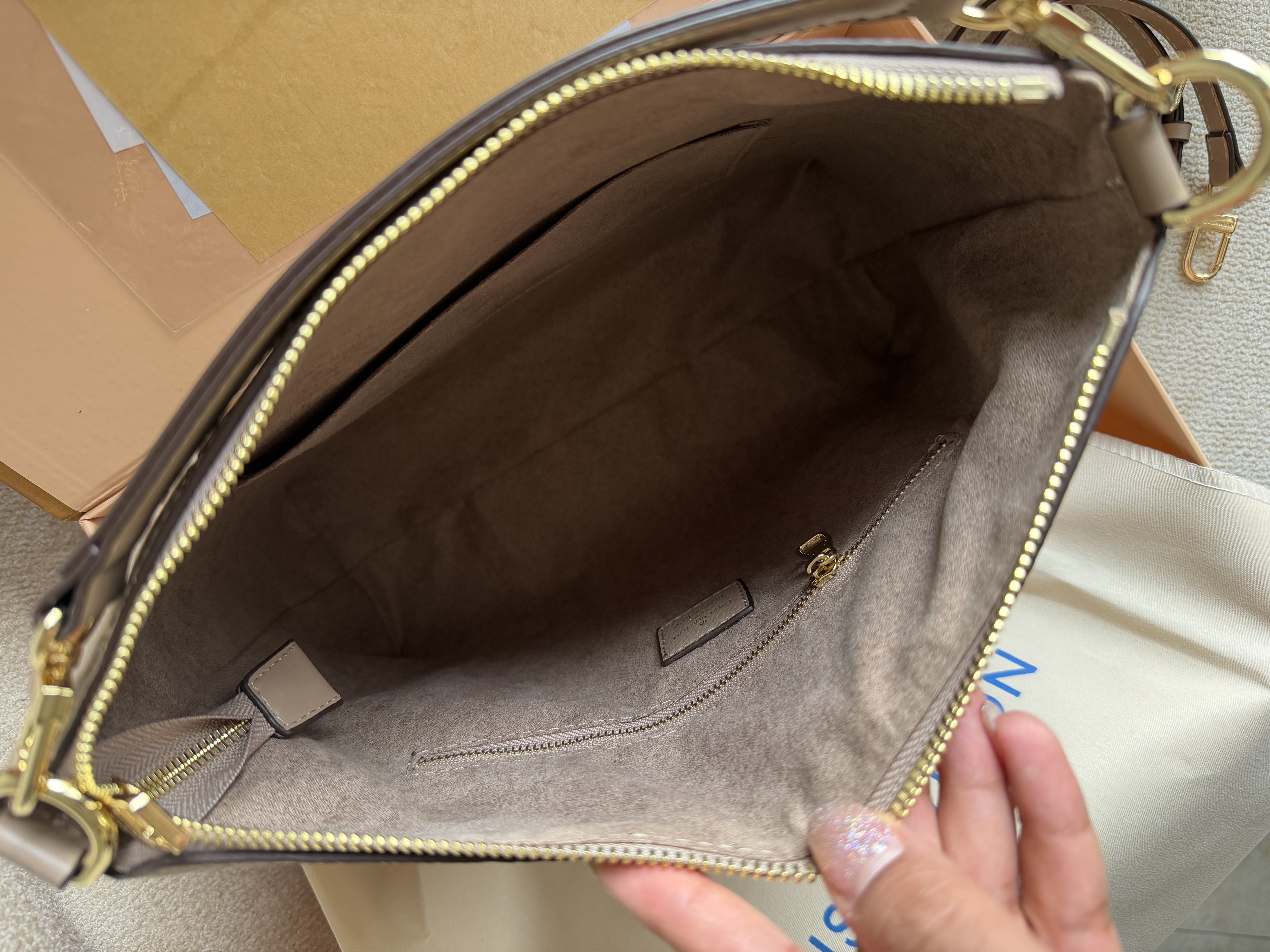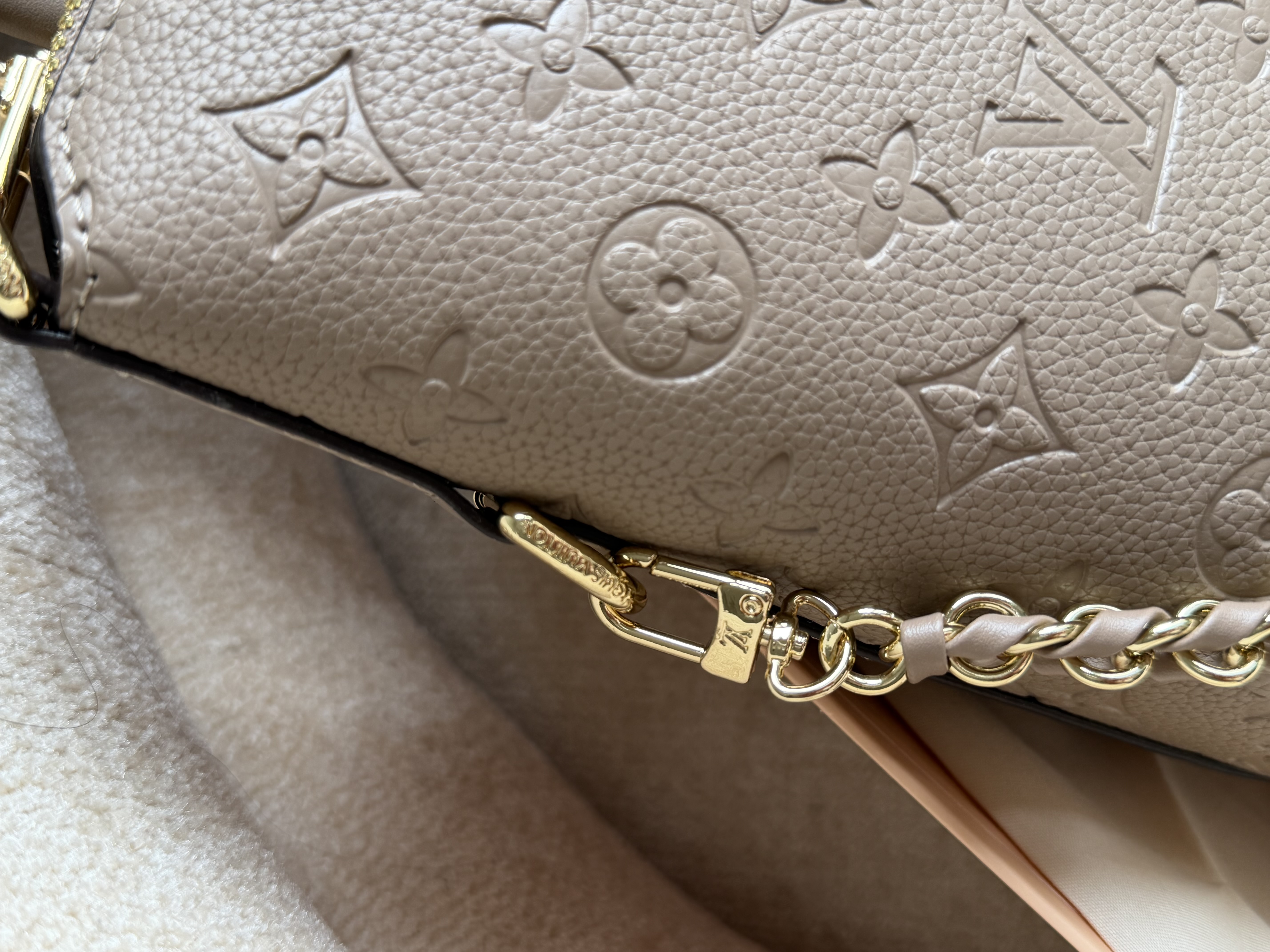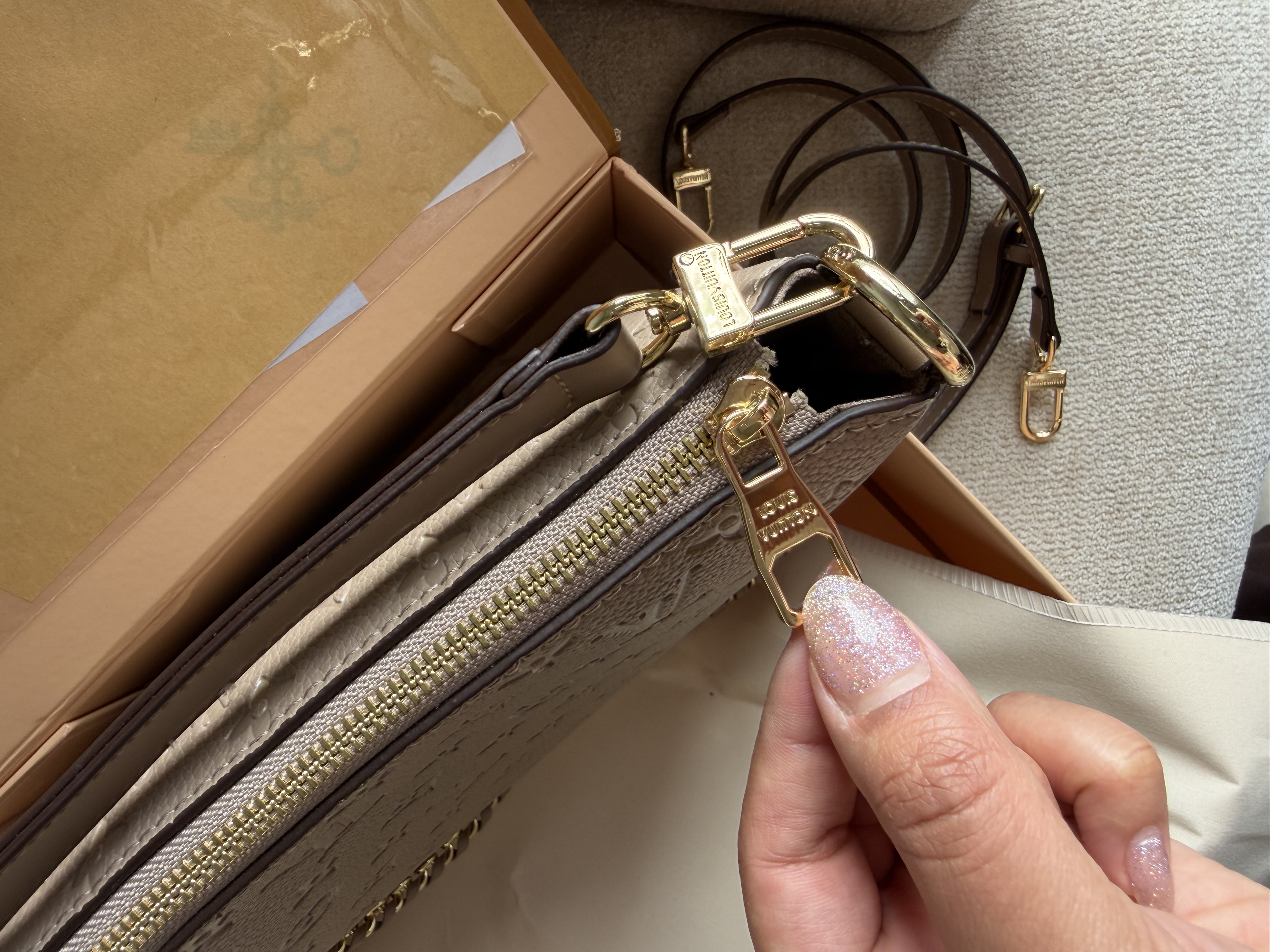 روی زیپ و یراق های کیف برند لوییز ویتون حک شده