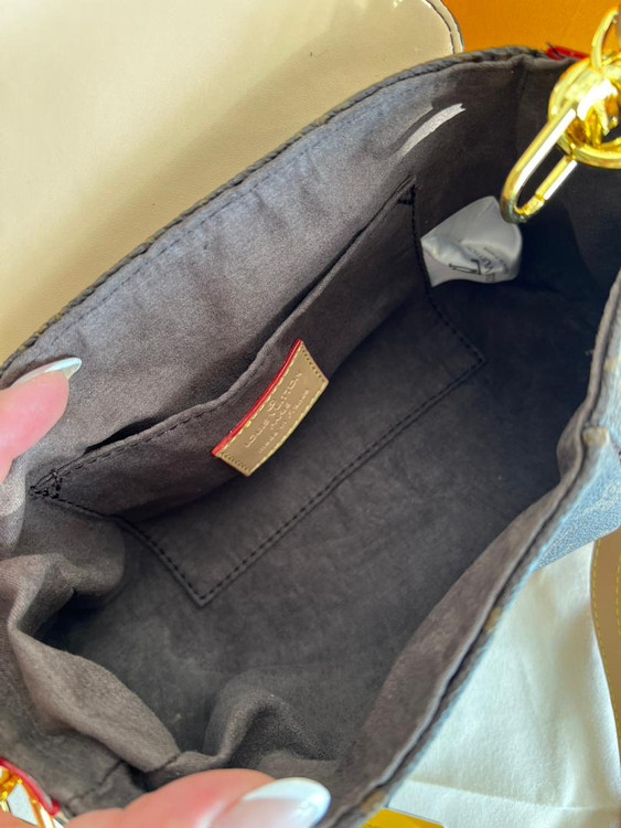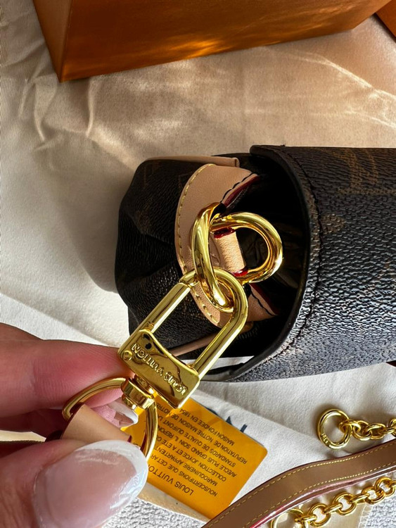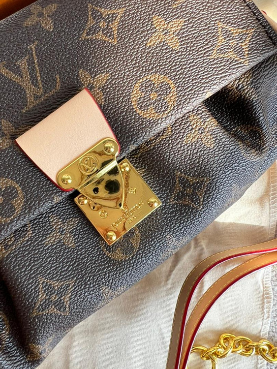 رو همه یراق های کیف برند لوییز ویتون حک شده
