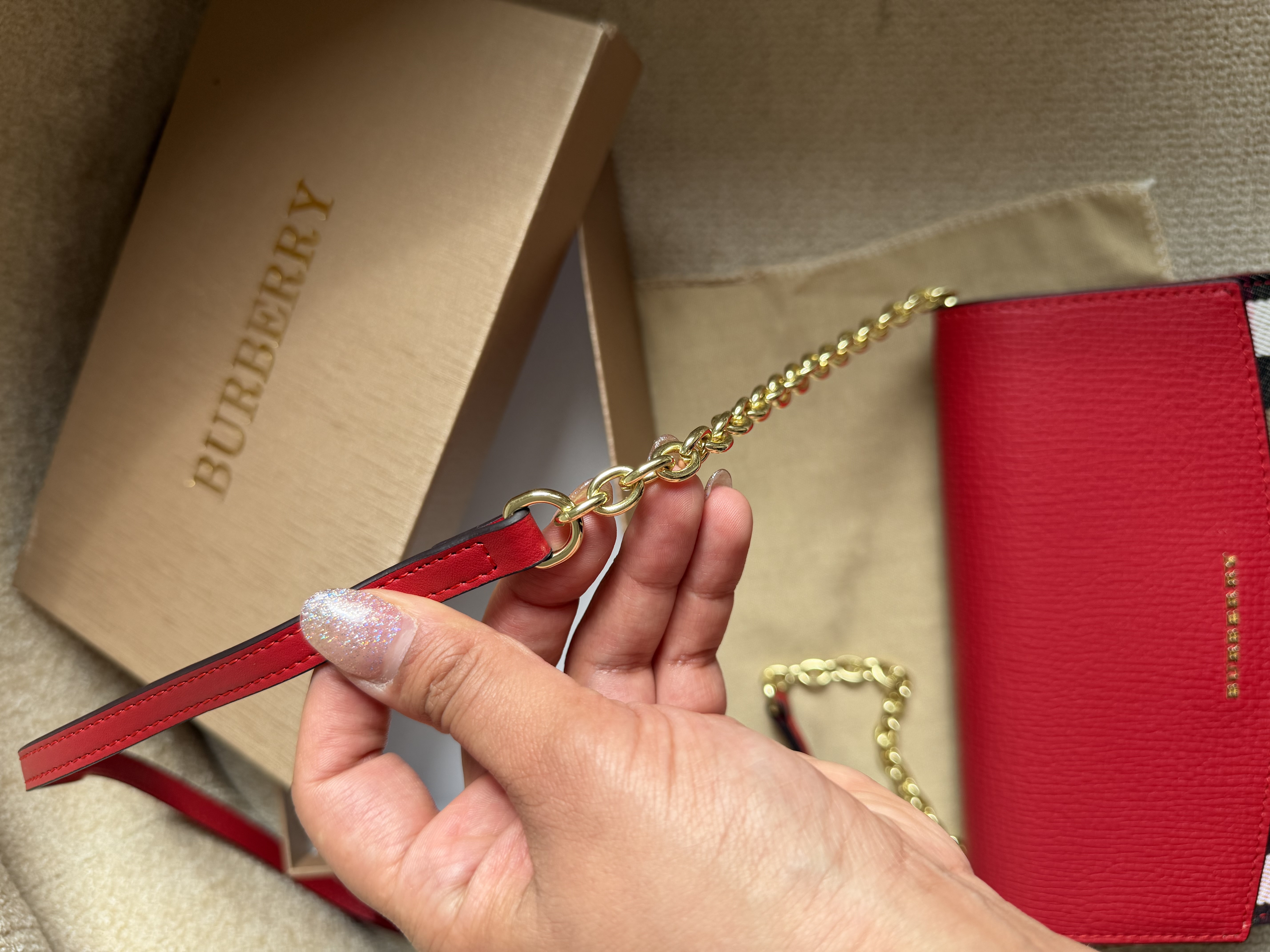 بند بلند ترکیب چرم و زنجیر داره که قابل تنظیم برای کراس بادی هستش