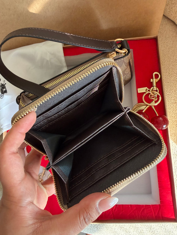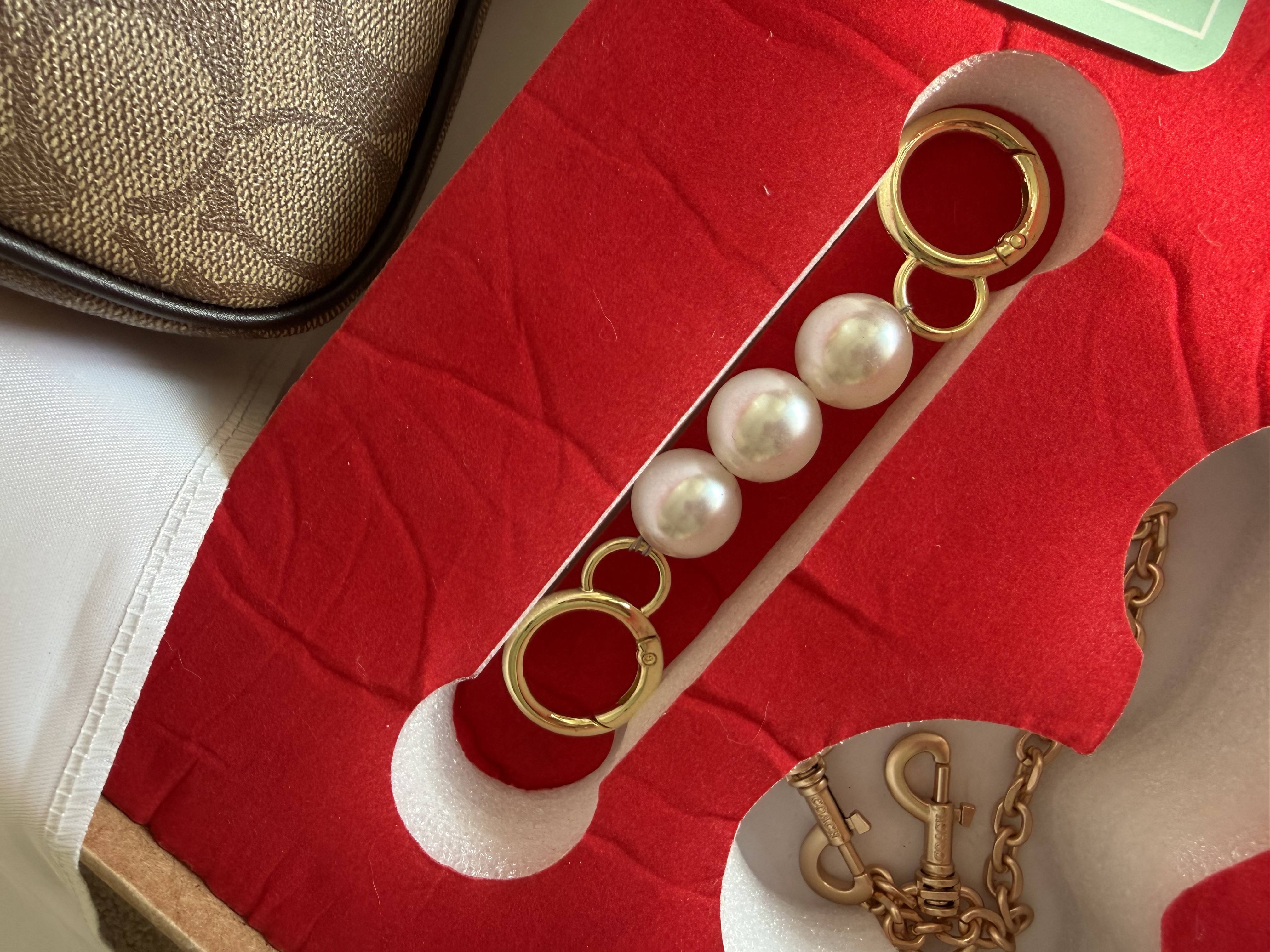 این پک شامل کیف اصلی +کیف پول جاکارتی + اویز گیلاسی + آویز مرواریدی که میتونید به بند کیف اضافه کنید