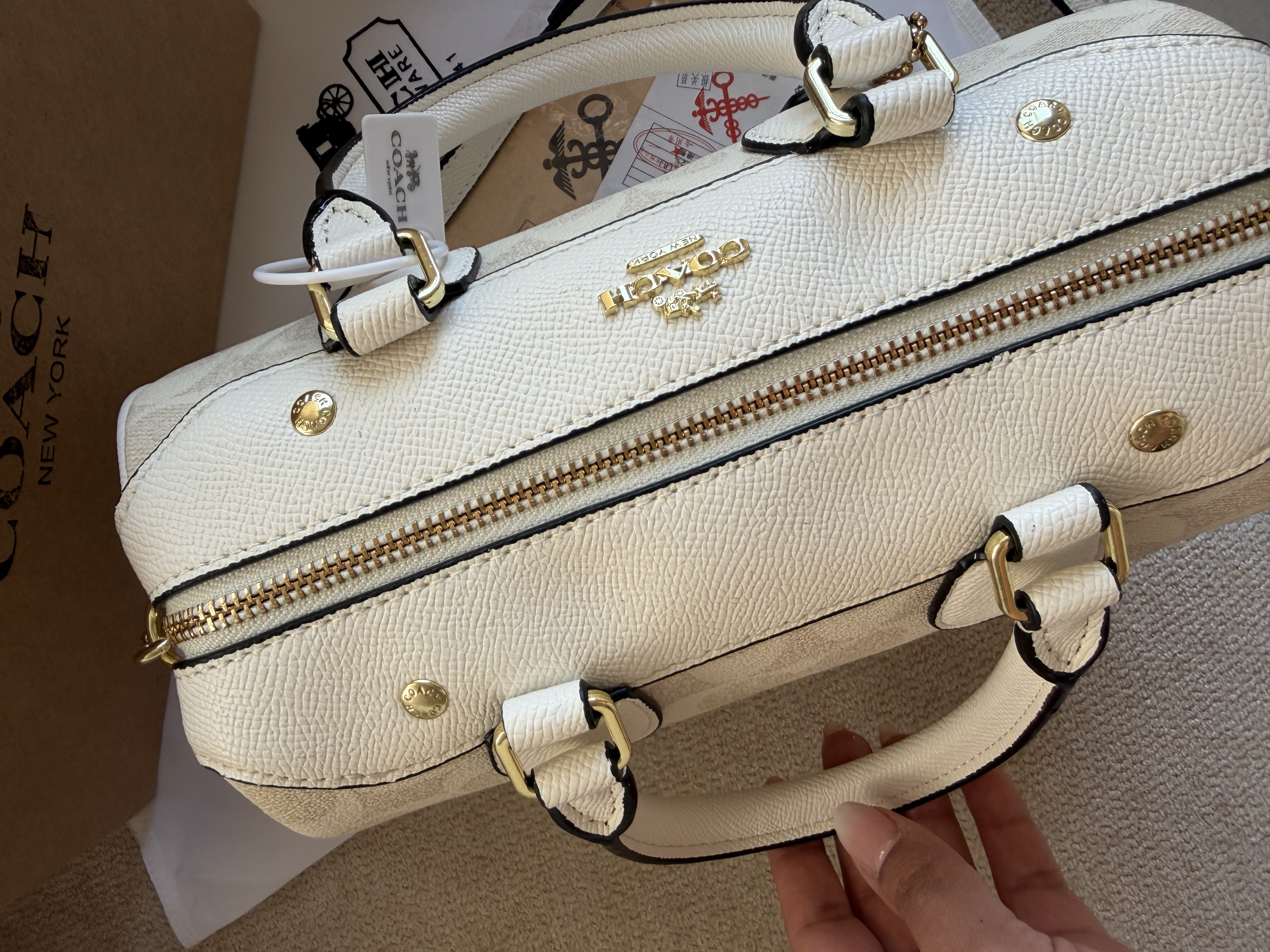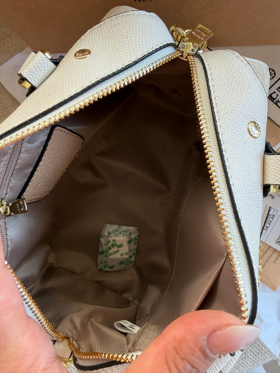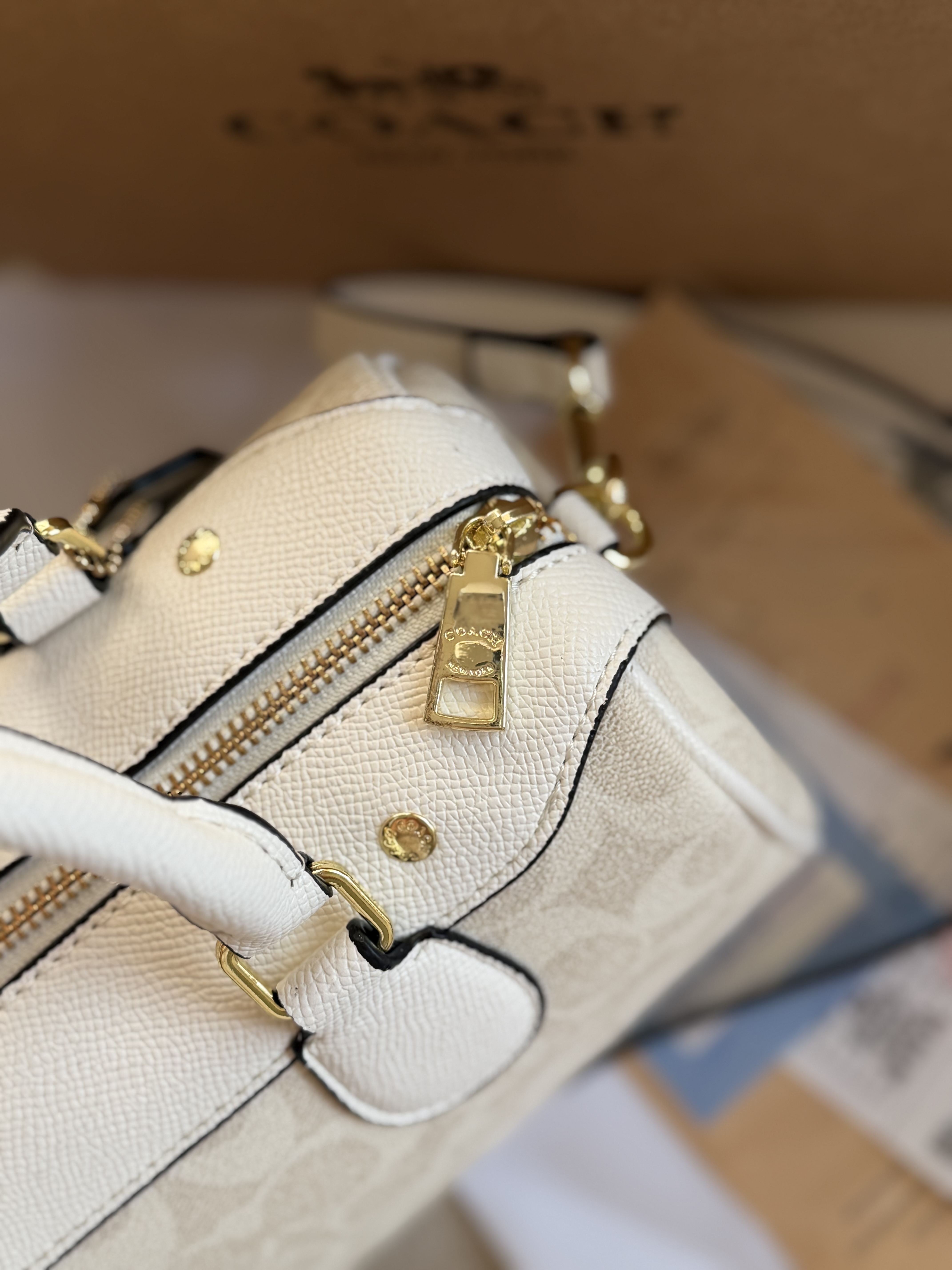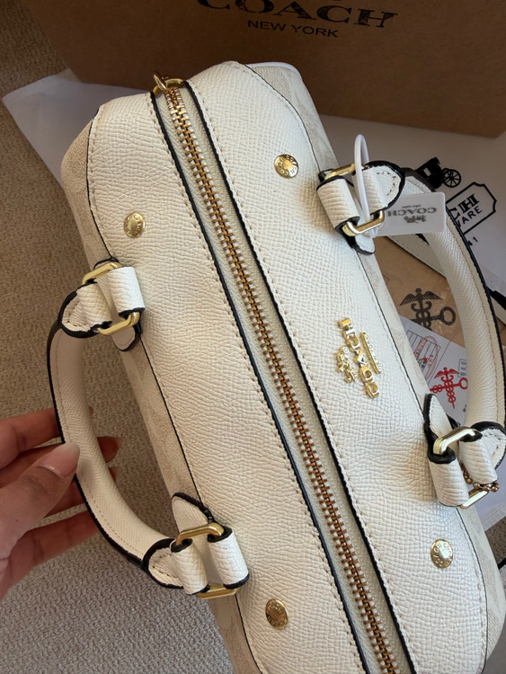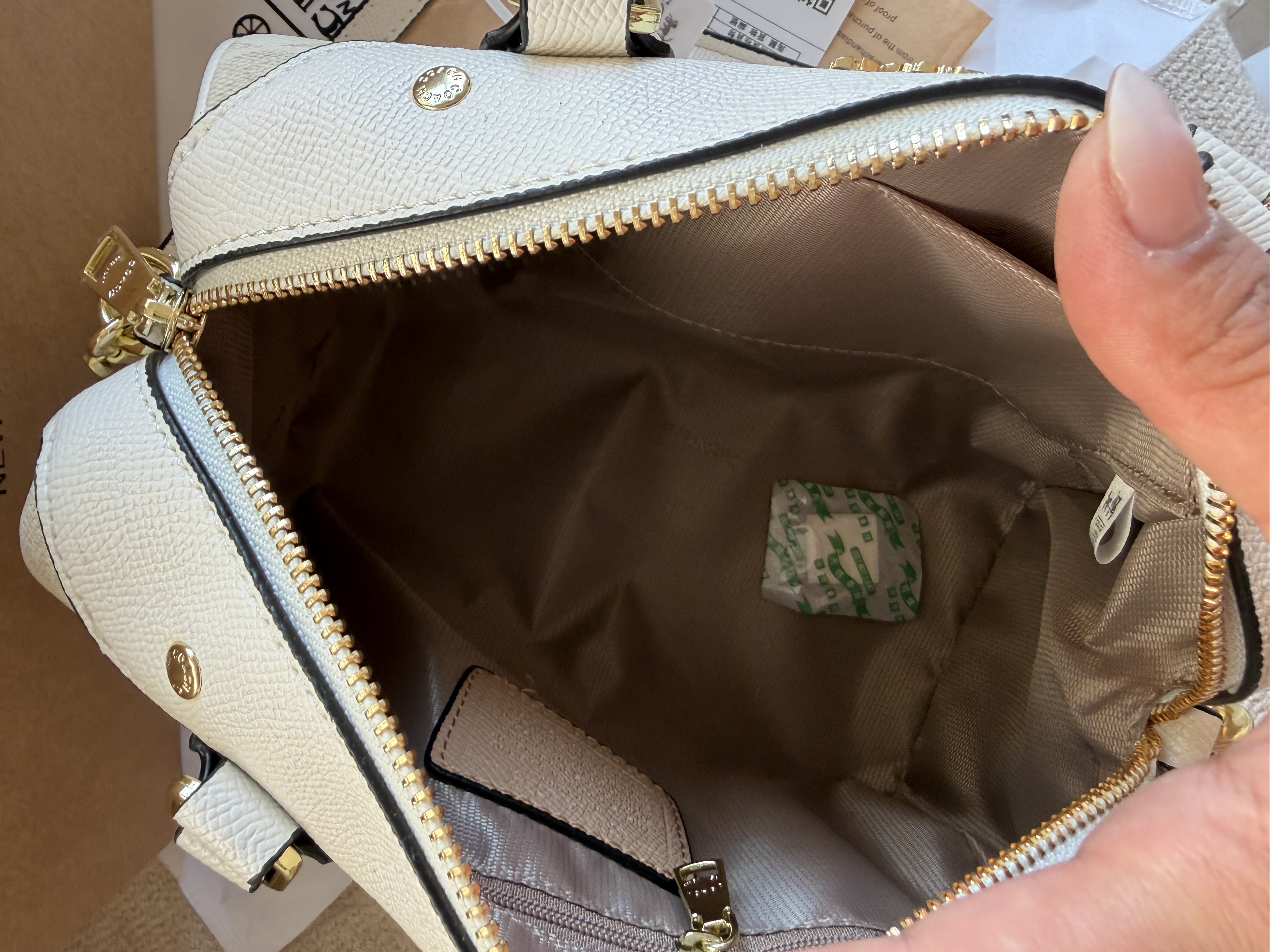 روی یراق ها و زیپ و آستر کیف برند کوچ حک شده