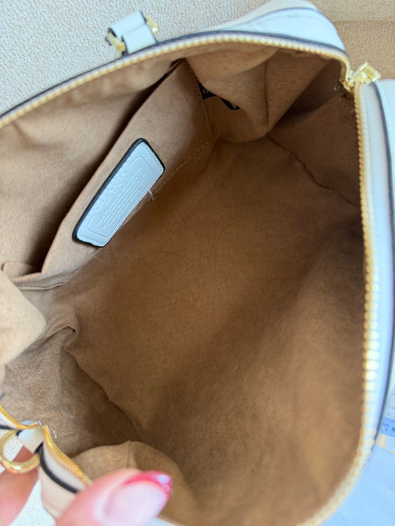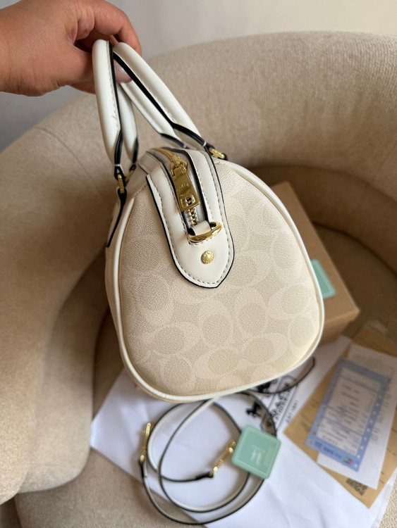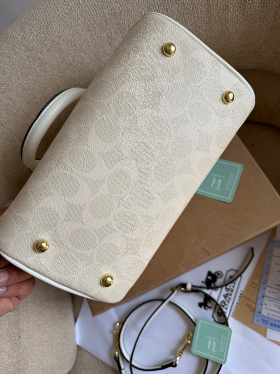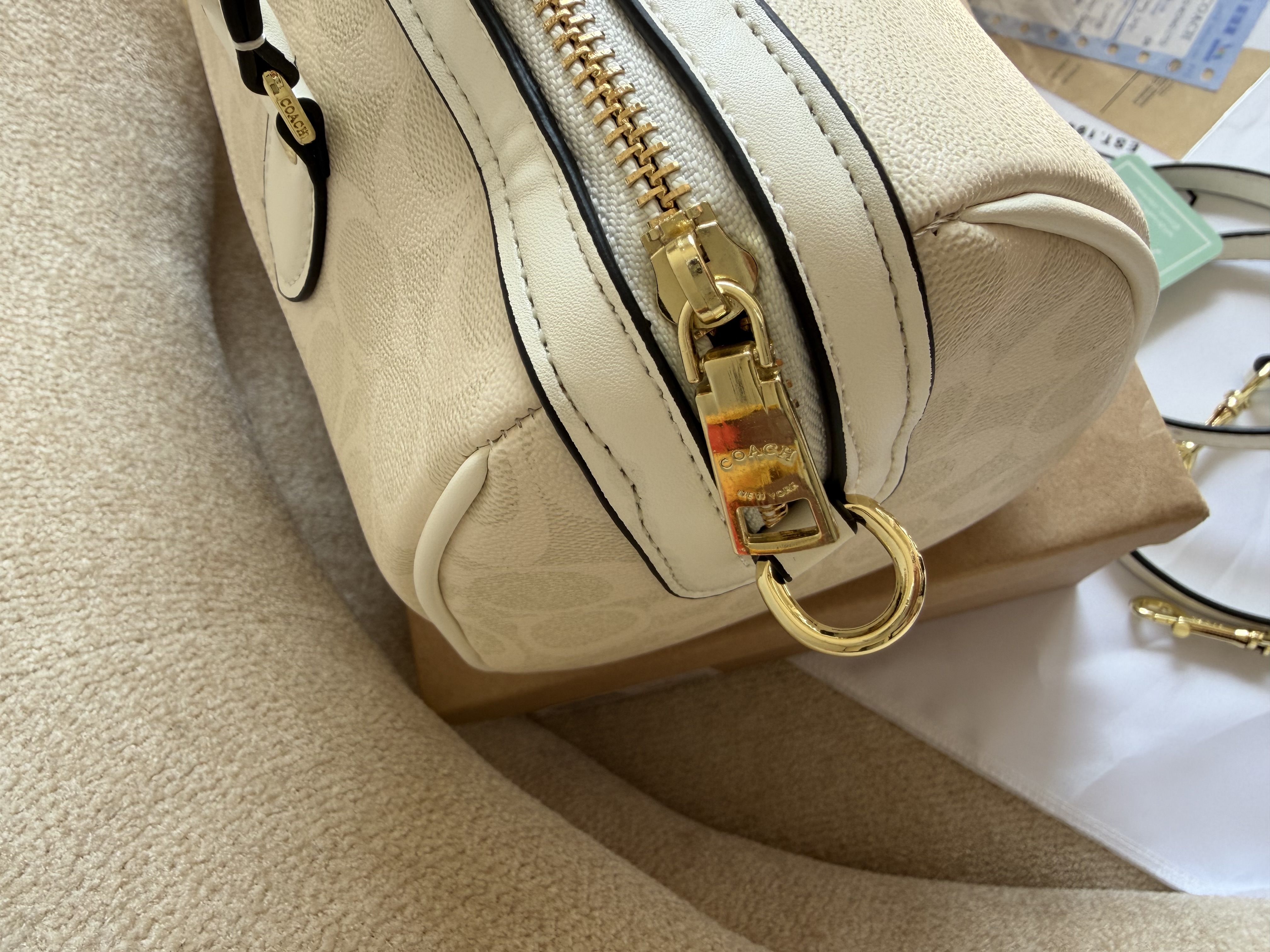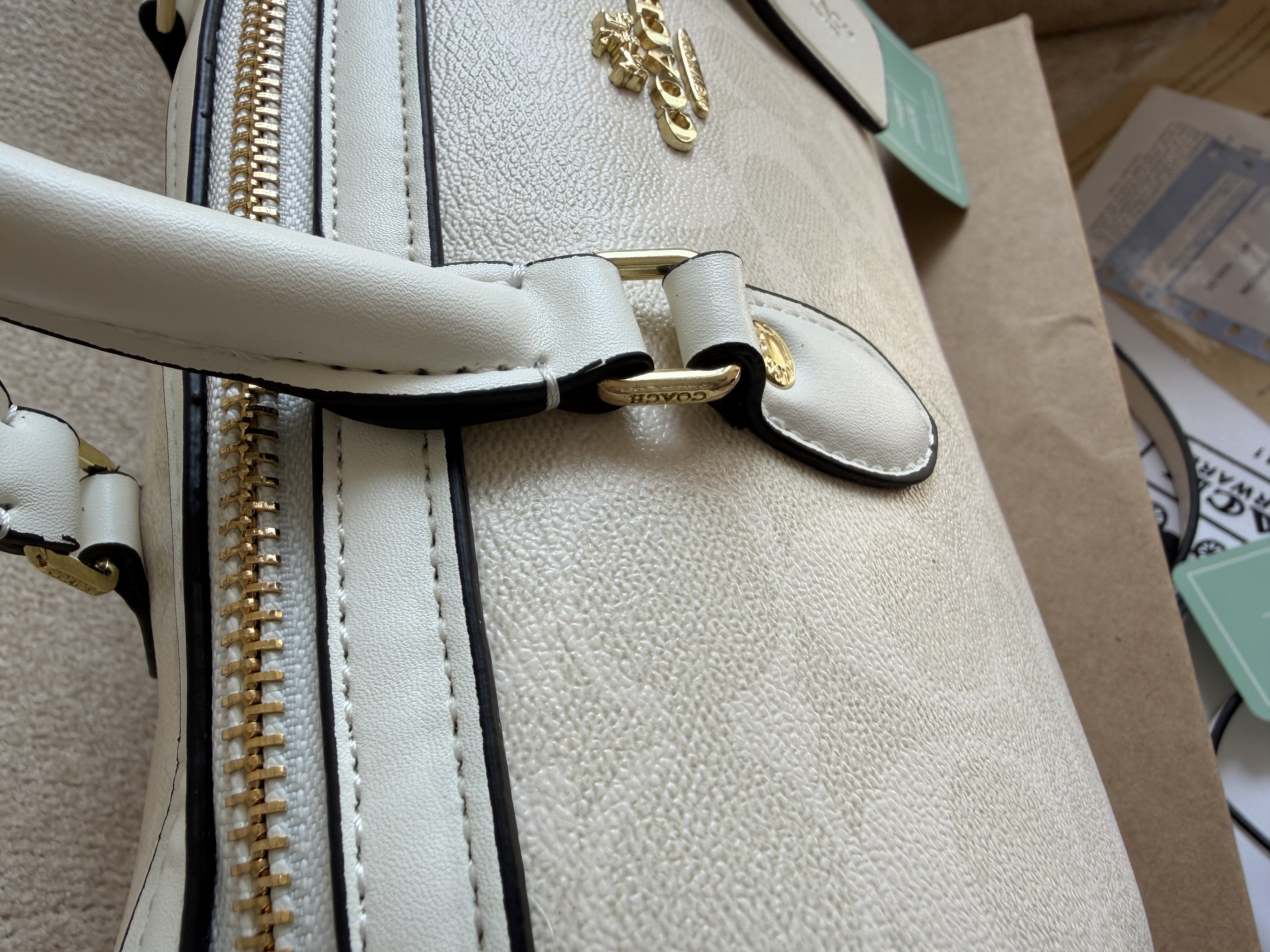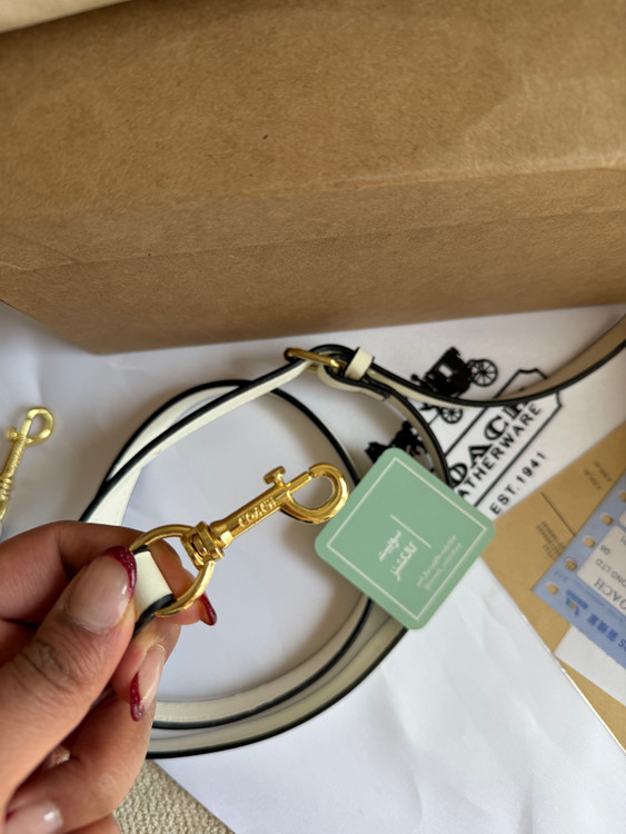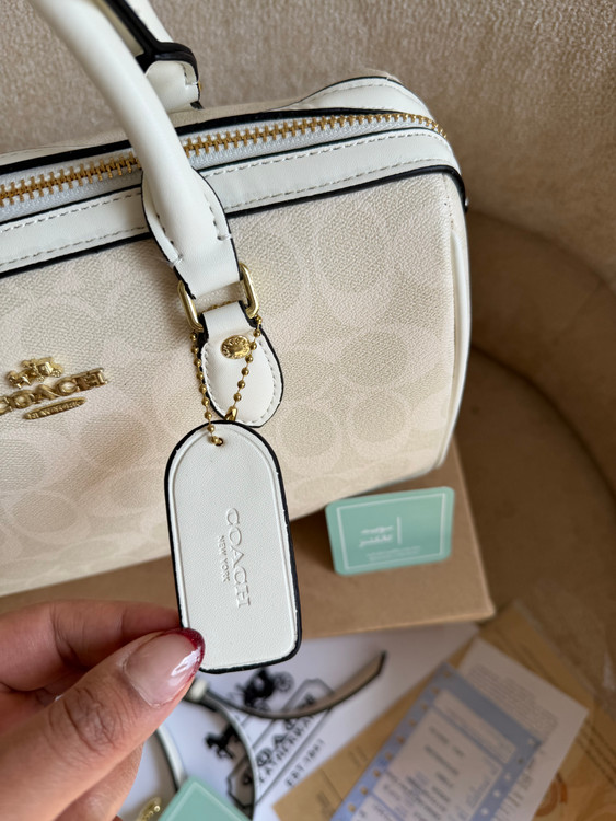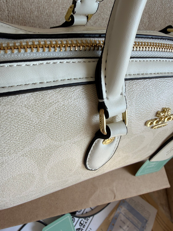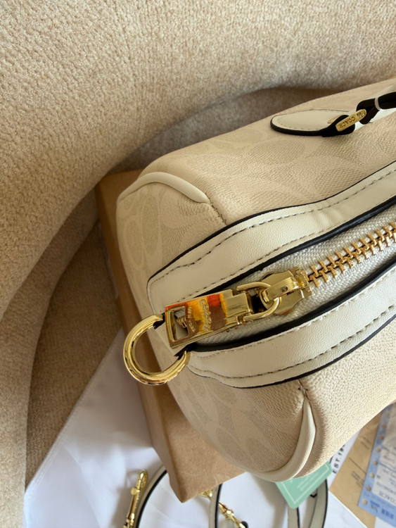 روی یراق ها و زیپ و آستر کیف برند کوچ حک شده