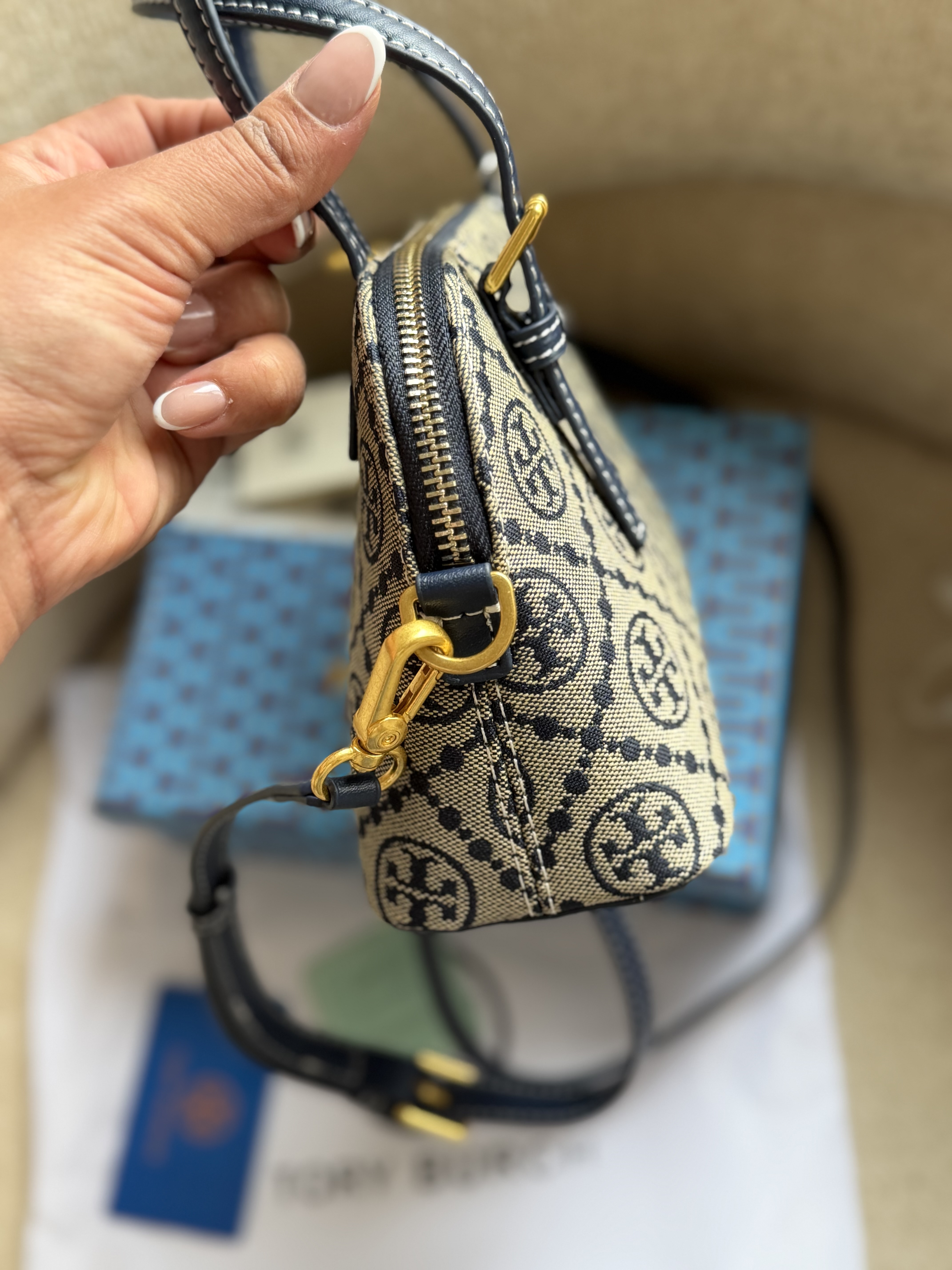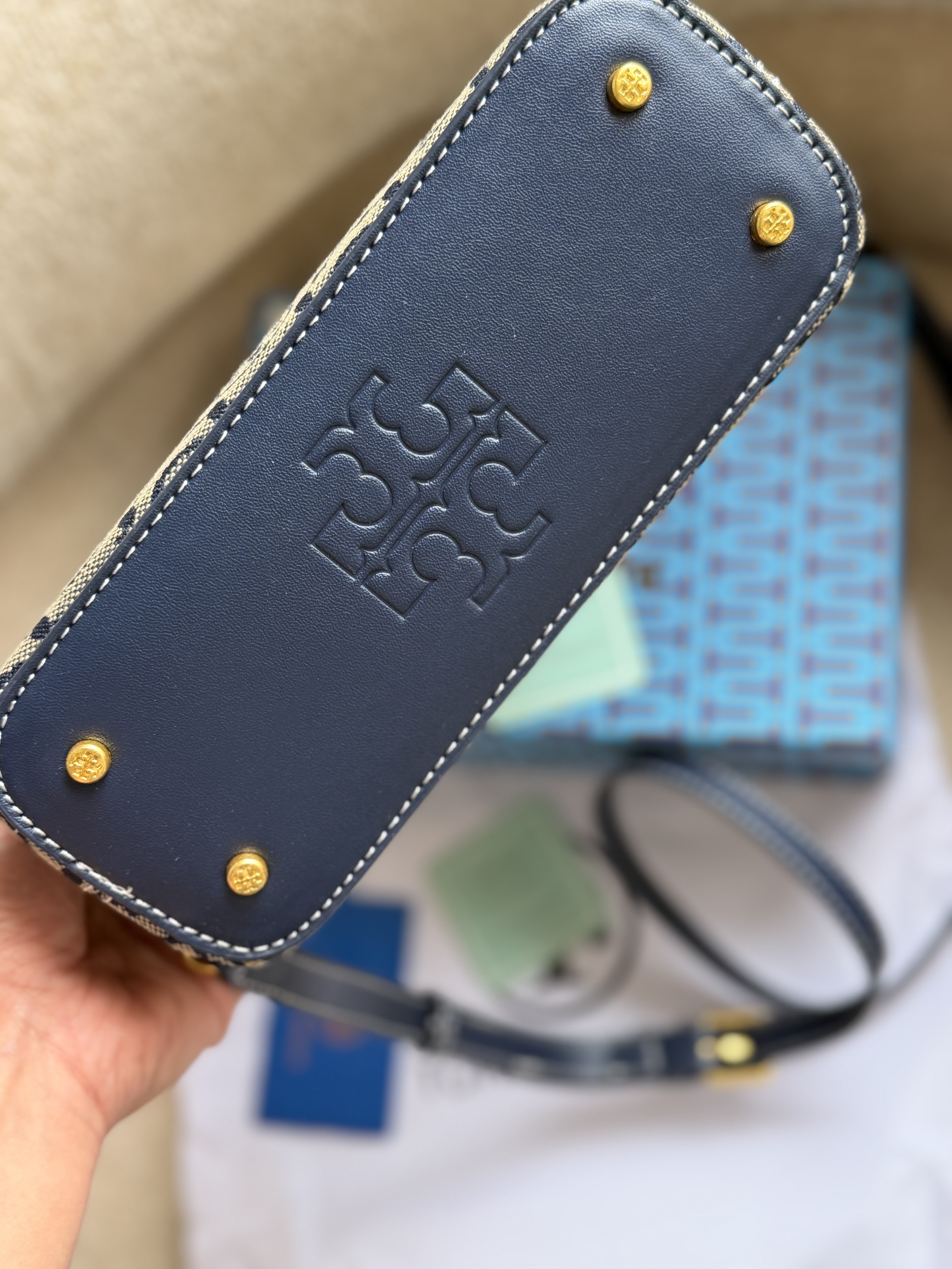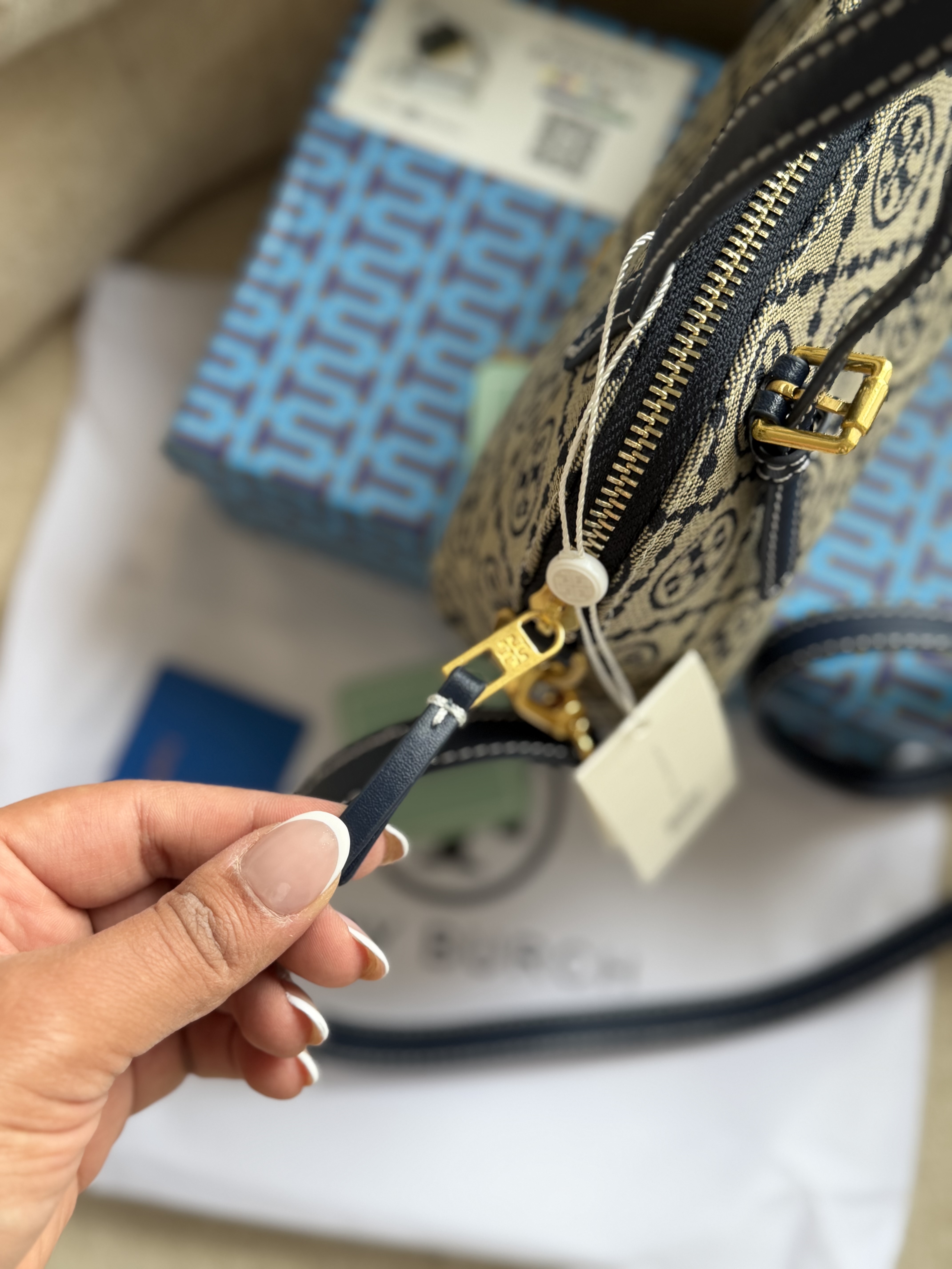 روی یراق های کیف برند توری برچ حک شده