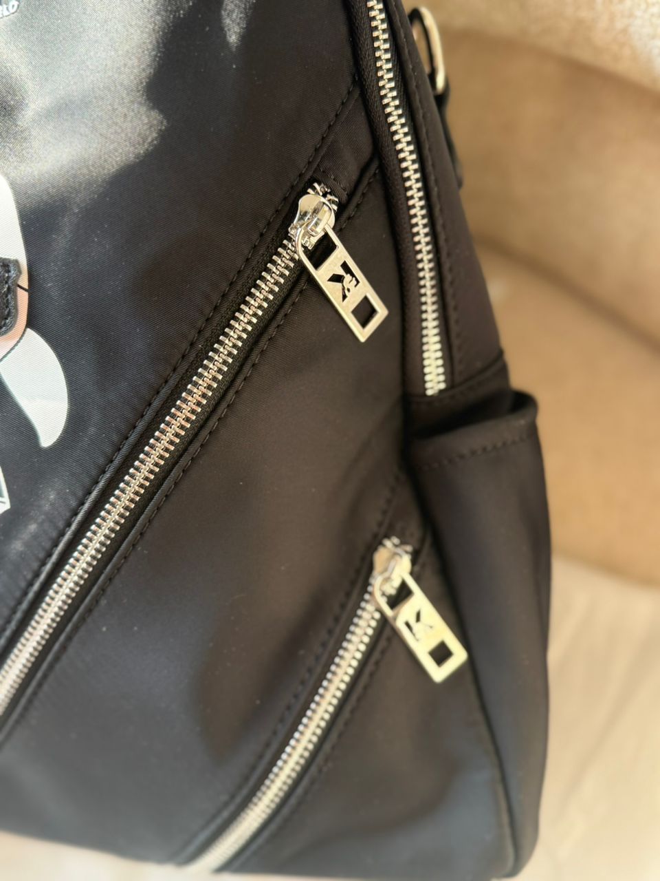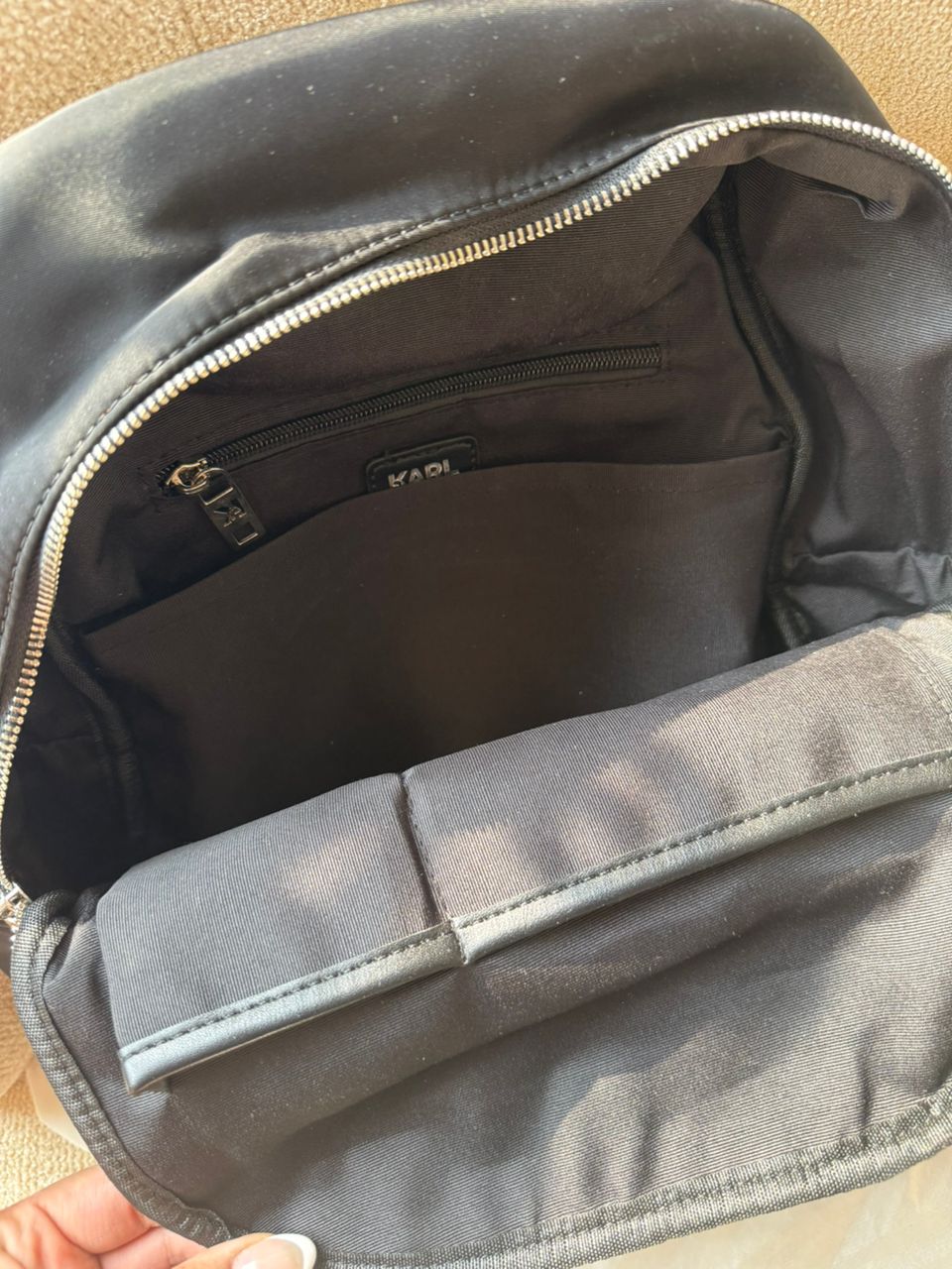 بسیار جادار و پشت کیف جیب دارد و کنارش جا برای گذاشتن بطری اب دارد .